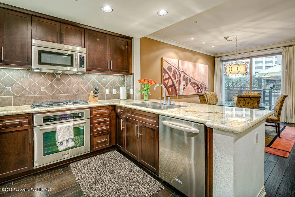 This stylish 2-story condo with 2 Bed/3Bath plus Office is located in the desirable Lake @ Walnut complex. As you enter the unit you pass by the office into an open floor plan that includes kitchen, dining area, living room and powder room. Unit amenities include granite countertops, stainless steel appliances, copper plumbing, upgraded recessed lighting, stone-tiled bathrooms, custom closet systems and pantry. An enclosed patio opens to the interior courtyard with built-in BBQ, fireplace and fountain to enhance your outdoor entertaining. Upstairs are two en suite bedrooms and washer/dryer. Additional Lake @ Walnut amenities include lobby, mail area, clubroom, fitness center, secured parking and low HOA. Located one block from metro and close to shopping, theaters and restaurants.complex amenities include lobby, mail area, clubroom, fitness center, secured subterranean parking and low HOA of $360. Conveniently located one block from metro and close to shopping, theaters, bookstores and restaurants. Come and enjoy all the benefits this unit and chic city living has to offer.