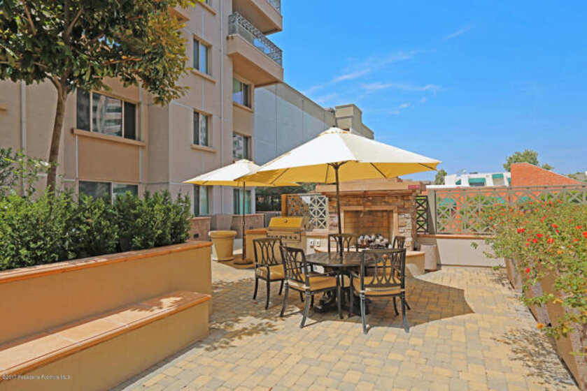 Sensational single-level 2bed/2bath PLUS den has the best floor plan at the incredibly convenient and desirable Lake@Walnut community. Quiet upper floor courtyard location, modern open floor plan, den/office that may be a third bedroom, one of the largest balconies in the community, only one shared wall, city views, interior laundry and low HOA of $344 make this an extraordinary opportunity. The kitchen with granite counters, designer backsplash, gas range, built-in oven and stainless appliances opens to the large dining/living great room combination. Most rooms open to the spacious patio with terrific city views, which includes the famed Pasadena City Hall. The master suite has a walk-in closet, oversized marble tile shower and double sinks. Other features include dual pane windows,recessed lighting, two walk-in closets, front loading washer/dryer, custom paint colors, soft water system, designer curtains, BBQ area, bike rack, exercise room, club house with full kitchen perfect for large parties, 2 parking spaces close to elevator (not tandem), controlled access community and convenient location in close proximity to Metro Gold Line, South Lake Ave. Shopping District, Playhouse District, Ralph's, Rose Bowl and major freeways. This terrific condo will not last!