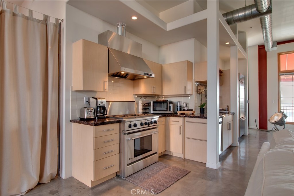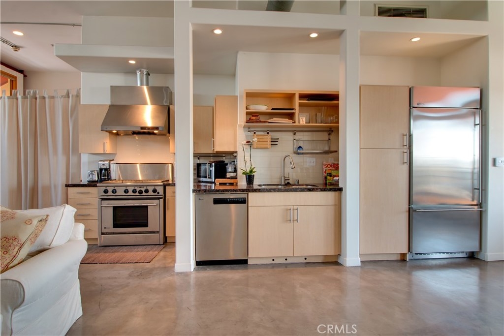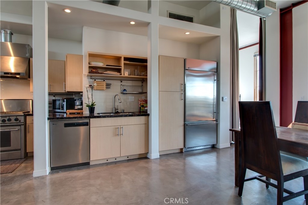 Come experience a very desirable location with an artistic urban setting in one of Pasadena's finest lofts. Beautiful Modern Loft in the heart of Old Town Pasadena's most exclusive residential area. 2 blocks from Colorado in the heart of the city. Very Sophisticated condo with premier high end fixtures and dramatic 14 foot soaring ceilings. The open concept floor plan includes a separate laundry room, stainless steel GE Monogram Kitchen appliances with granite counters including a built in Refrigerator. Attractive and well appointed master bathroom suite with walk-in closet, 2nd guest bathroom with oversized shower. 2 gorgeous balconies from opposite sides of the loft are private and spacious, facing north & south with spectacular views! It is very rare that unit becomes available on the top floor. This unit is also an end unit with no common walls surrounding the entire unit with the exception to the unit below. Located on the site of the original Pasadena Library it's just a short walk to Old Town Pasadena with many restaurants, shops and all the night life Pasadena has to offer. Gold line accessible makes downtown LA only 15 minutes away. This loft represents the finest design essentials in a premier, safe and urban living environment. Unique opportunity to live in the heart of the city! One of the few buildings in Pasadena that inspires the artistic past with modern appointments. Restaurants, entertainment and shopping are Steps from your door.