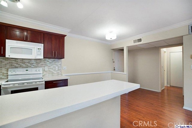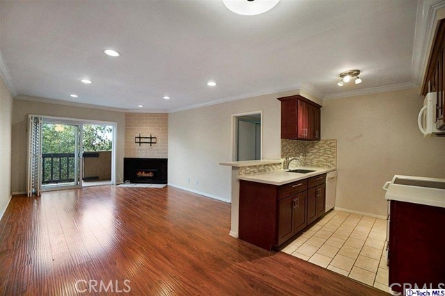 Located in a desirable and quiet neighborhood near Old Town Pasadena, this charming and clean 2 bedroom, 2 bath condo has all the right stuff. Exclusively located in the Madison heights neighborhood of Pasadena on a tree lined street, this Condo offers so much. Spacious bedrooms with lots of closet space, living room with fireplace and balcony a with mountain views, nicely done kitchen with beautiful cabinets, quartz counters and glass tile back-splash. Amenities include glossy laminate wood floors, recessed lighting, crown molding, plantation shutters, and central heat and air. The complex has a spacious patio with a pool, BBQ area with plenty of seating, gazebo, sauna room, large laundry room, community room and gym. Well established building with low HO.