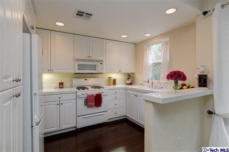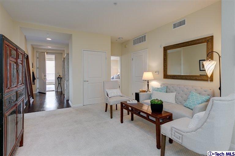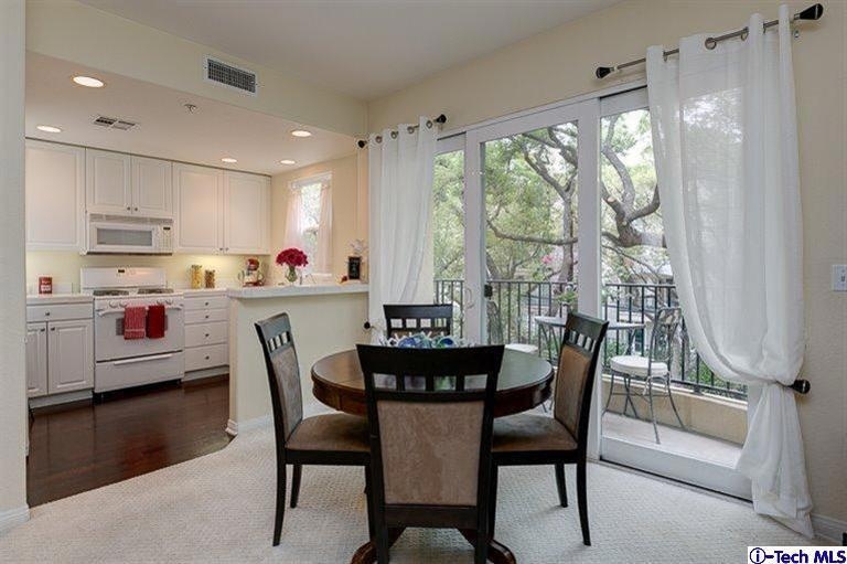 Charming Condo centrally located in the heart of Pasadena, steps from Pasadena Playhouse District, Fuller Seminary, great restaurants, shopping and entertainment. This 3rd floor unit has tree top views, lovely light throughout the unit and all the conveniences built in such as stackable washer dryer, fridge, dishwasher, stove and microwave, all included in the sale. Built in 2003, the building has a security entry and parking. You will find lovely lush landscaping throughout the complex. As you enter this unit you will notice the spacious covered patio - a great spot for enjoying some outdoor gardening, dinner or reading a book. The hallway entry has wood floors and is accented with 2 bookcases that open into a spacious carpeted living room. The dining area has sliding glass doors out to a quaint balcony with plenty of room for a table to enjoy the afternoon sun. The kitchen with gleaming white tile counter top has plenty of storage too. Great Location to live, rent, or invest in!