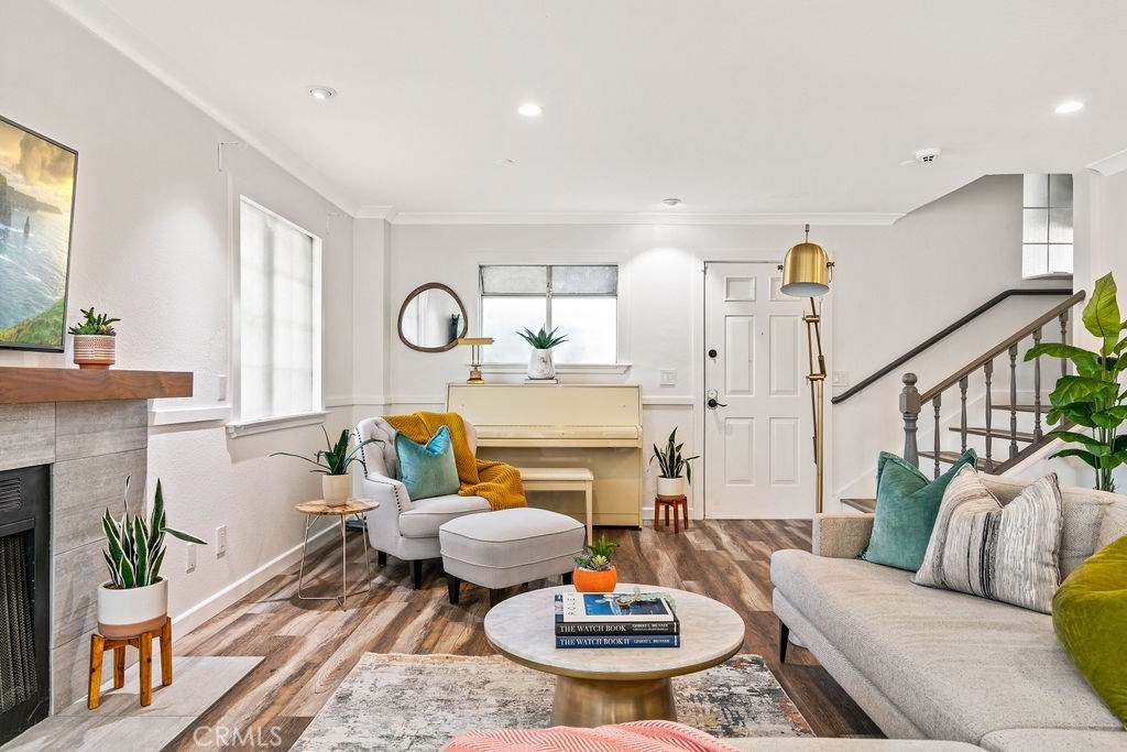 Beautifully updated condo in the heart of Pasadena! 2 bedrooms, both featuring en-suite bathrooms, plus an additional half bath downstairs for your guests. This beautifully appointed home shares only one common wall, with no one above or below you, for added privacy. The convenient, direct-access two car garage leads to the open-concept living area, which features wide-plank laminate flooring, recessed lighting, and a glass door leading to the balcony, which floods the room with light. Cozy up around the chic fireplace this holiday season and enjoy a clean cord-free aesthetic thanks to the pre-wiring for a wall mounted television. In the kitchen you'll find beautiful countertops, newer stainless steel appliances, and modern cabinets featuring several frosted-glass accent doors. Additional upgrades include central A/C and heat, along with a tankless water heater to increase energy efficiency. Just minutes to Old Town Pasadena, enjoy seemingly endless shopping and dining options along with convenient proximity to the Metro Gold Line Lake Station and freeway access.