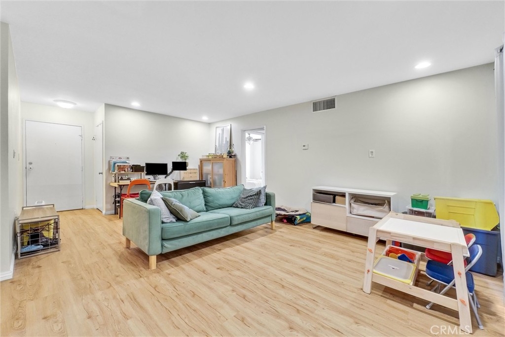 Welcome to this charming abode nestled in the heart of Pasadena. This inviting residence boasts 2 bedrooms and 2 bathrooms, providing ample space for comfortable living. Step inside to discover a bright and welcoming living room, adorned with beautiful laminate flooring and recessed lighting, creating a cozy ambiance for relaxation and entertainment. The updated kitchen is a chef's delight, featuring sleek cabinets and stylish backsplash tiles, offering both functionality and modern aesthetics (stove, rangehood and dishwasher included). Adjacent to the kitchen, the open dining area is a delightful retreat, enhanced by elegant wallpaper, a modern minimalistic light pendant, and tasteful wall molding, creating a sophisticated space for intimate gatherings and memorable meals. Step outside onto your private balcony, where you can enjoy the outdoors in peace and tranquility. The balcony is equipped with a privacy covering, providing an intimate space for lounging or enjoying your morning coffee in seclusion. This unit is equipped with central AC, ensuring year-round comfort and climate control. As you proceed to the bedrooms, you'll find plenty of storage cabinets in the hallway, providing convenient solutions for organizing belongings and keeping the space clutter-free. With its move-in ready condition, this property offers buyers the convenience of immediate occupancy, saving on renovation costs and hassle. Additionally, the HOA includes essential amenities such as water, trash, sewer, maintenance of grounds, permitted pets, and controlled access to the building, providing residents with peace of mind and a carefree lifestyle. Situated within a building comprising 19 units, this unit presents a rare opportunity to own a stylish and comfortable residence in a desirable Pasadena location. Don't miss your chance to make this your new home sweet home!