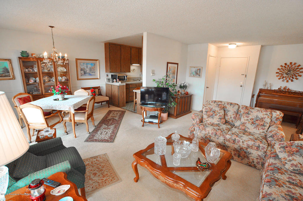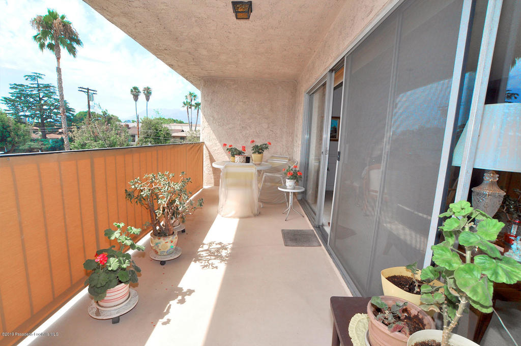 Natural light fills the spacious living room and dining area through floor to ceiling windows. Step out to the private balcony for al fresco dining and peaceful mountain views. Large bedroom features a huge walk-in closet. Secure building and parking garage also provides easy elevator access to the top floor, single-level condo. Besides the pleasant lobby area, the HOA has a separate large recreation room with kitchenette and a community laundry. Central air and heat will keep you comfortable all year long. Location is key here: one block south of Colorado Blvd, near CalTech, PCC, the Gold Line and freeways.