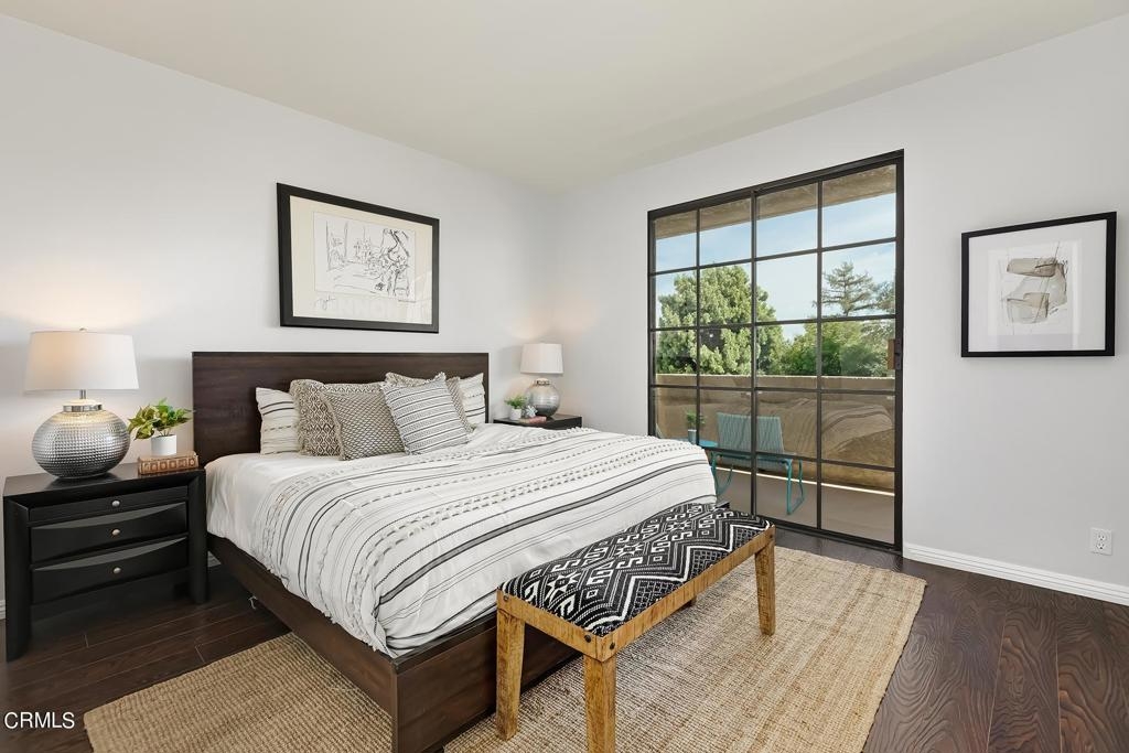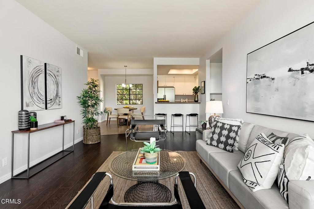 Sophisticated top floor single-level south facing condominium with views and a modern open floor plan is centrally located in Pasadena's desirable Playhouse District. High ceilings welcome you upon entry to this recently updated residence where the open kitchen with gas stove, living room with fireplace and dining area all combine providing ample room to entertain. Two bedrooms, each with walk-in closets, are on opposite sides providing for maximum privacy. Master bedroom with en suite bath opens to the over-sized patio with city and treetop views making it an ideal retreat and place to grow your favorite plants. Other amenities include 2 side-by-side parking spaces in a gated subterranean garage, pool and earthquake insurance. This wonderful building with serene courtyard is near most of Pasadena's best attractions making it one not to be missed.