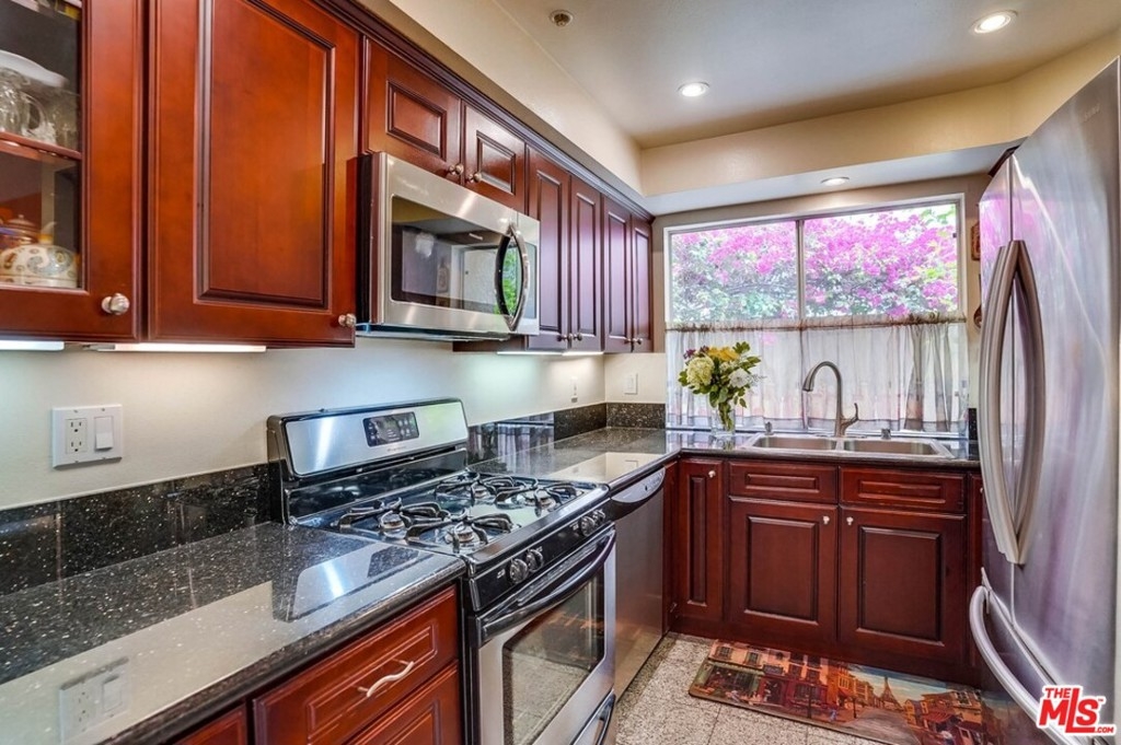 Beautifully remodeled 2 bedroom, 2 1/2 bath townhouse in a highly sought-after, walk-able neighborhood near downtown Pasadena, Lake Ave, shops and restaurants on a tree lined street. This is a front unit with its own entry way and private sitting area in a lush garden. The first floor includes central A/C, recessed lighting in bright living room with fireplace, powder room, dining room, laundry room and gourmet kitchen, with nice cabinets, newer stainless steel appliances and lots of storage. The 2nd floor has 2 spacious master suites with double sink in the bathrooms, walk-in closets, and a large balcony with gorgeous tree tops and street views. Convenient side-by-side parking for 2 cars, bikes and extra storage in secure garage. Roof has been replaced 2,5 years ago, A/C is two years old, Termite repairs have been done 2 years ago, garage walls have been resurfaced 2 years ago. This townhouse has everything you need, just come and see it yourself.