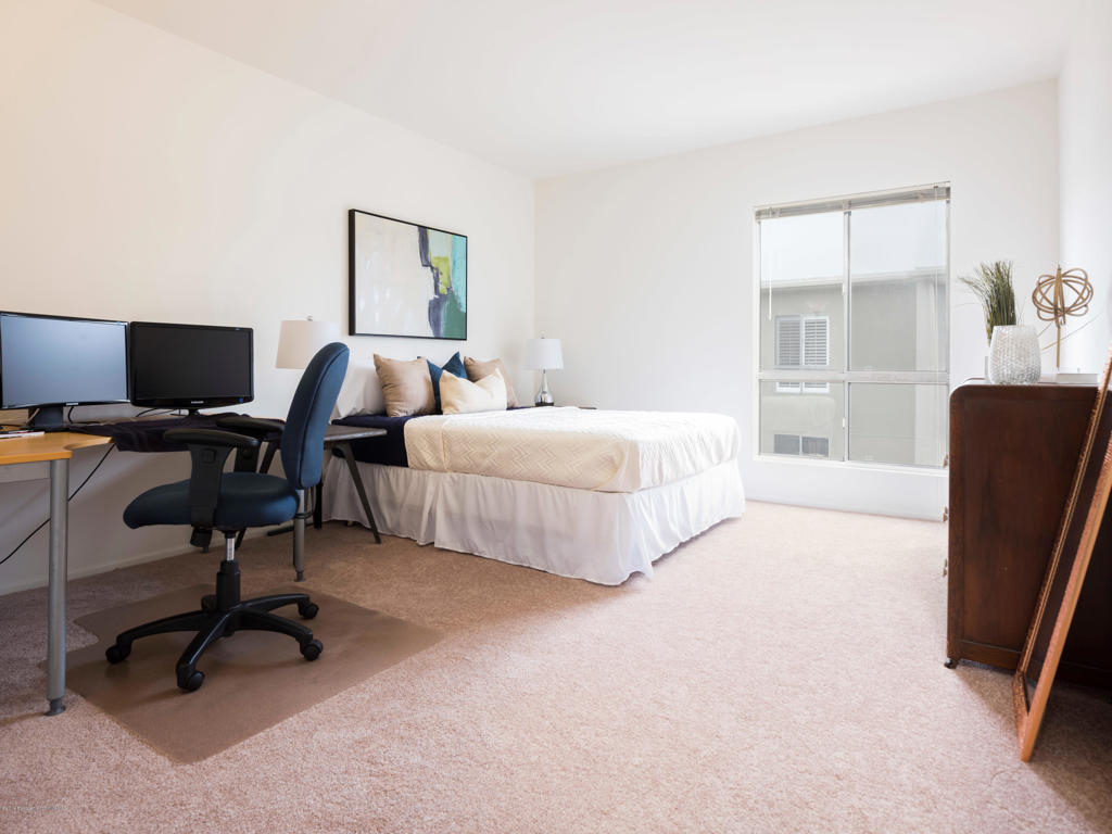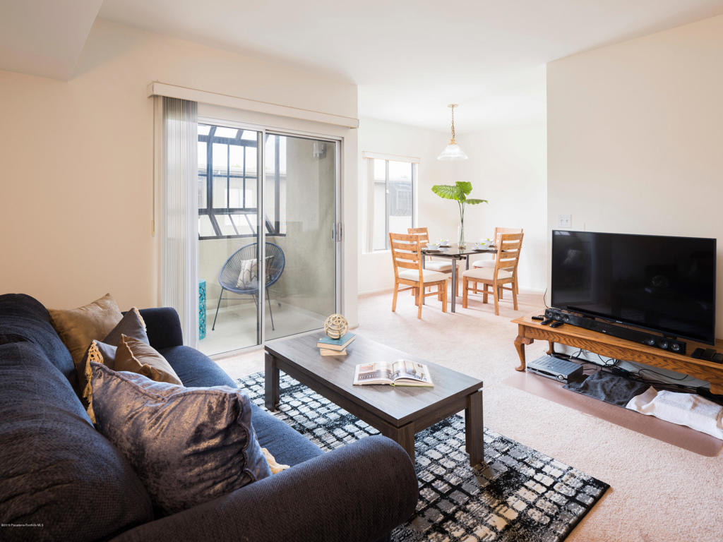 Location, location! Top floor one bedroom unit in the popular Olive Tree complex in the South Lake area. Very light and bright, new carpet and freshly painted. Large living room, dining area and kitchen with stove, microwave and dishwasher. Enclosed patio offering more space for an office, sun room, etc. The spacious bedroom includes space for a desk or sitting area. 2 large walk in closets in the unit. Full updated bathroom. Central air and heat. The community laundry room is right next door. Security complex . One parking space (located near elevator) and storage unit. Complex offers many amenities such as large pool, spa, sauna, BBQ,rec room and beautifully manicured courtyard. Homeowners Association carried EQ insurance.