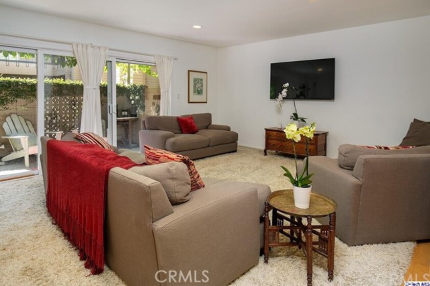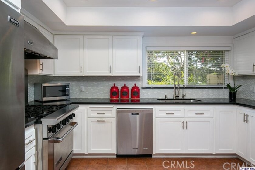This stunning first floor, one-level condominium is located in an established garden style complex on Millionaire's Row. Remodeled in 2014, the entry, living room , dining area and kitchen combine to create an impressive open concept design. The focal point of the living room is a beautiful gas-burning marble fireplace. The living room and dining room open through oversized Milgard sliding glass doors to a wrap around fully fenced patio. The remodeled open kitchen features stainless steel appliances, including a six burner gas range, refrigerator, and granite counter tops. The master bedroom suite features a full bath, walk-in closet and private patio. The second bedroom has an adjacent bath, which also can be used as a powder room for guests. The stackable washer and dryer are located in a closet on one of the patios. The serene swimming pool area features a recreation room. The conveniently located assigned parking spaces are #1 and #2. HOA Fee includes earthquake insurance.