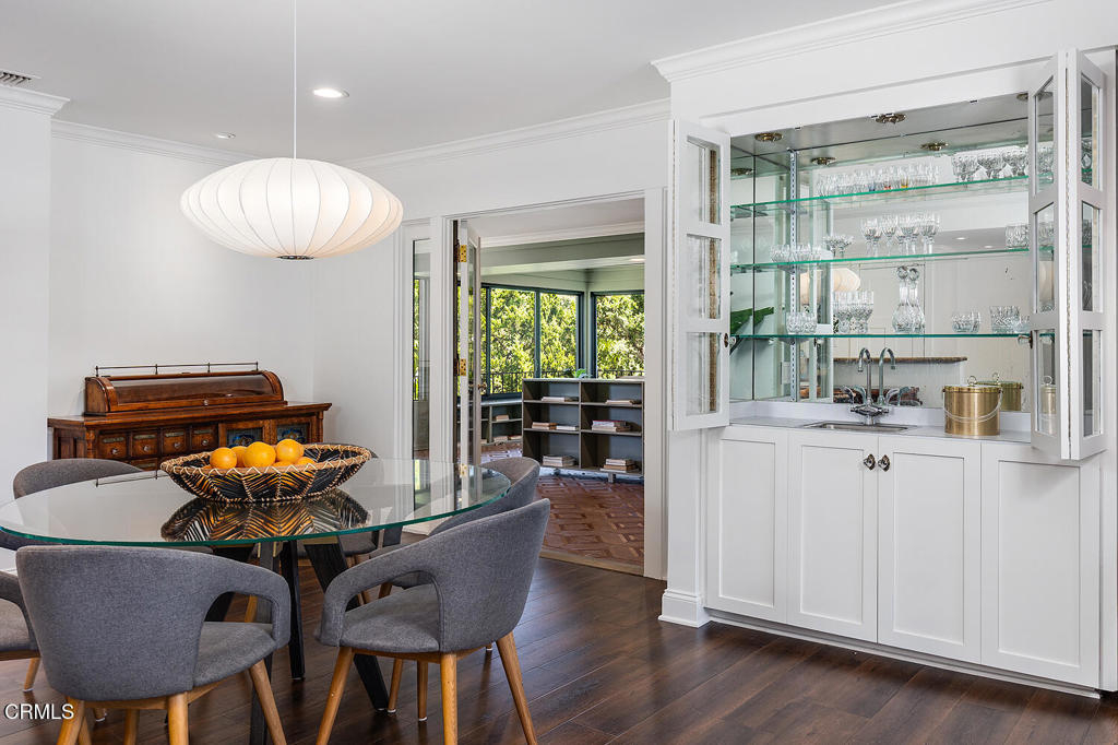 Back on the market at no fault of the property; buyer did not perform. This mid-century penthouse offers all of the benefits and none of the headaches of single family residence living, on a spacious single level. Located in the desirable Orange Grove Terrace complex, boasting classic mid-century architectural features including breeze block walls and clean lines, this corner unit is special. With three bedrooms (one a large primary suite), three baths, and 3625 SF of living space, including patio sunroom offering open air tree top and mountain views, THIS is lifestyle. With no shared walls, this uber private, quiet condo enjoys a gated formal entry with custom tile work and midcentury built-in planters. The carved wood front door opens to a generous open concept entry, flowing into a light filled living and dining rooms. A decorative cornered raised travertine fireplace is a highlight - coupled with two sets of with French doors leading into the sunroom, it makes for superlative entertaining. Conveniently, the kitchen and pantry are located adjacent to sunroom and dining room as well. While the east facing public rooms are conducive to hosting, the private spaces of the home are well placed on the west side of the unit. The sunny family room is nicely appointed with built-in bookshelves and a secret storage compartment hidden in the tongue and groove wall paneling. Two bedrooms, both nicely sized with en suite baths (one accessible to the hallway for guest use) are equally desirable as bedrooms or a home office space. The third, primary bedroom is incomparable with its grand proportions, private balcony and enviable layout, including bath with marble countertop double vanity and generous dressing. With a sparkling private community pool, handsome landscaping and two covered parking spaces, one might never feel the need to leave this peaceful home. However, this location in southwest Pasadena offers some of the most beautiful architecture and breathtaking vistas anywhere in southern California. Convenient to Old Town Pasadena, downtown LA and everything beyond, this is a unique opportunity to live in town, with elegance and privacy.