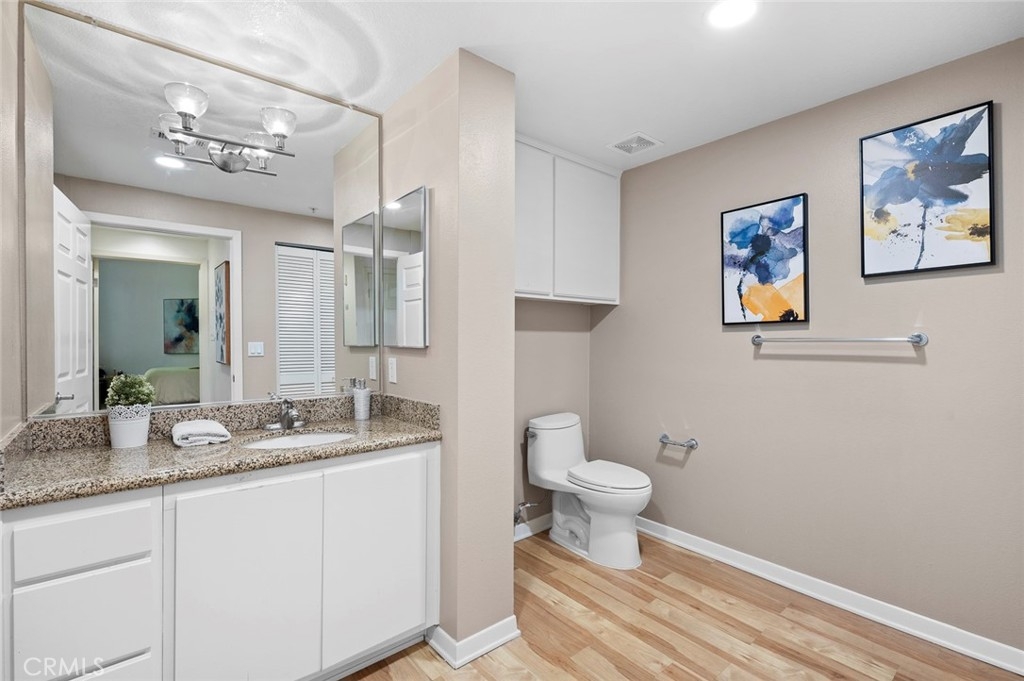 Location, style and sophistication abounds in this 1-bedroom upscale Pasadena Collection West condo within the heart of Pasadena's South Lake District. Offering one of the best interior locations it overlooks the lush and peaceful garden courtyard. Bathroom and kitchen beautifully display granite counter tops, white cabinets and wood laminate floors. Bright and airy the living room features a gas fireplace and a slider leading to one of the largest balconies and provides an open concept to the beautiful kitchen. Additional kitchen features include a stainless-steel sink and dishwasher. The spacious bedroom has two large closets and a nook which can be used as a rest/office area. The oversized bathroom has a tub and shower combo, plenty of storage cabinets and a laundry closet to house side by side washer and dryer. Come experience a community that offers the very best of urban living offering a secure building with full concierge service, state-of-the art fitness center, gated subterranean parking with an assigned parking space, indoor elevators to serve upstairs units and parking garage. It is minutes away from the Metro Gold line station, Playhouse district, Old Town Pasadena, also with a close proximity to California Institute of Technology, JPL, Pasadena City College and a stroll away from boutique shops, fine dining and trendy eateries.