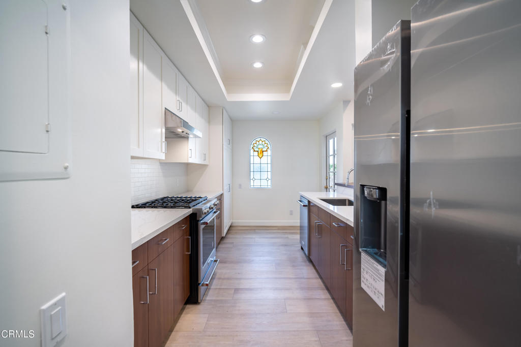 Come see this beautiful and fully updated condo with almost everything brand-new, that is situated at the ground level with a beautiful private garden and patio space with 50 flowering plants, great for outdoor living. From your garden you can enter into your living room and kitchen through the double set of glass paneled French doors where you will find a wood burning fireplace wrapped in black leather granite and a walnut mantle. The open concept layout has the living room flowing into the kitchen where you will find all new stainless steel appliances, custom designed maple cabinetry, and a built-in bar to easily serve dinner. This spacious condo features a primary bedroom with its ensuite bathroom that has a double vanity and all new modern tiling and mirrors. This home also features a guest bedroom with a bathroom adjacent to it that are both fully renovated with a modern look. Some additional features that come with this unit are a new automated drip irrigation system, Nest Wi-Fi thermostat, in-unit laundry closet, chef's kitchen with 5 year warranty on the all new appliances, new tankless water heater, 2 gated subterranean parking spots, and extra storage space. This condo is located close to Caltech, Huntington Gardens, and Old Town Pasadena which includes all of its attractions! HOA dues cover water, trash, and earthquake insurance. Do not miss out!