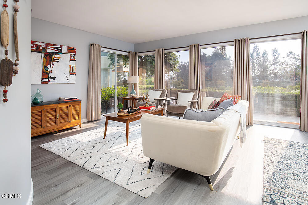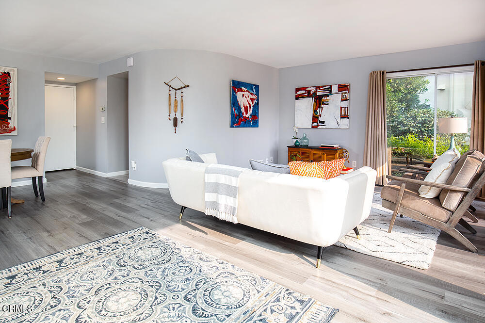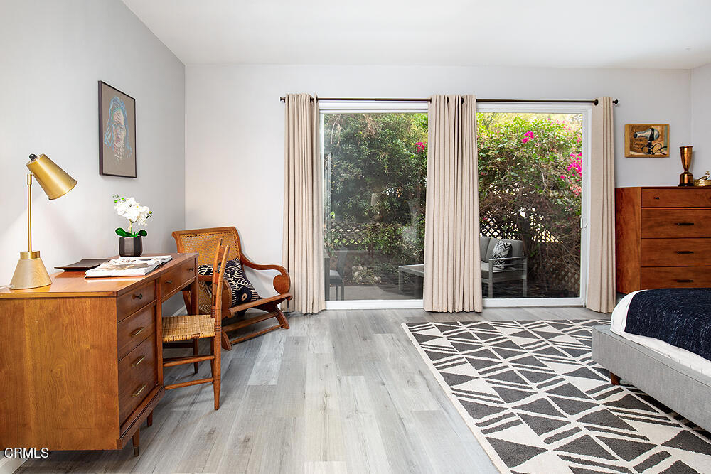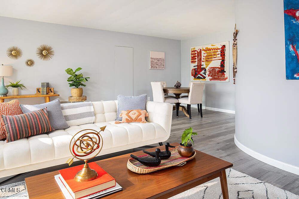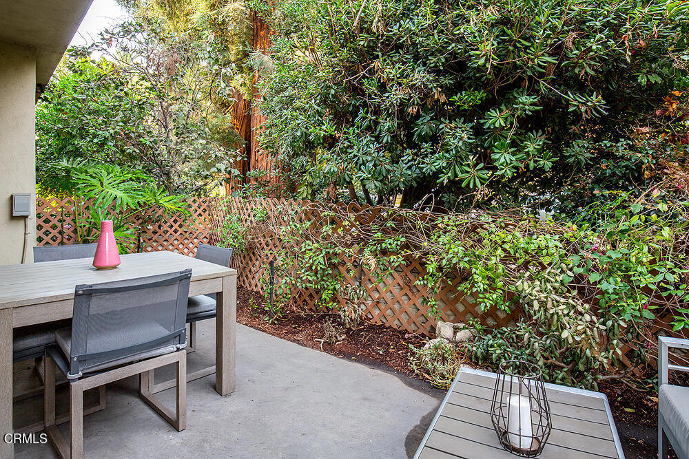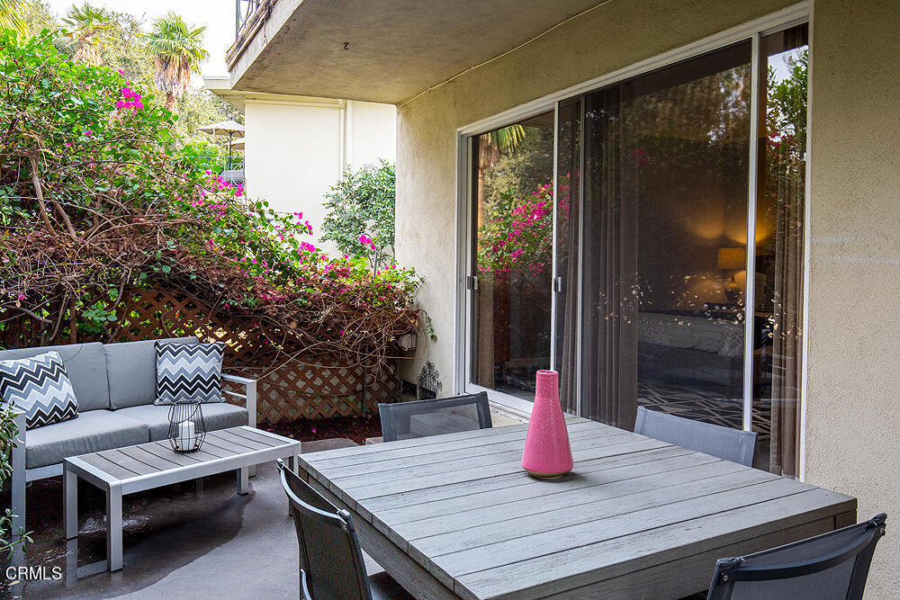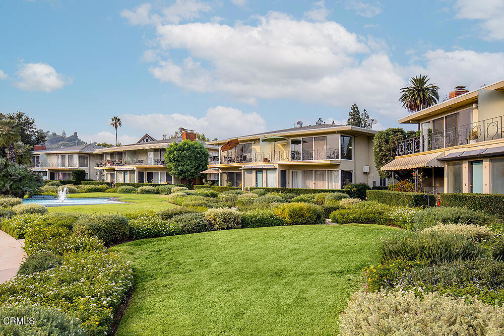 Plaza del Arroyo, by noted architect Lionel Mayell, overlooks the arroyo seco ravine and the Colorado Street bridge on the bluffs of Pasadena's east arroyo. Providing easy access to Old Town, the Rose Bowl and aquatic center, and a fantastic residential neighborhood rich in architecturally significant estate properties-this fully renovated mid-century condo provides for all utilities included in the monthly HOA fee of $476.10. A large, bright open living room and dining area overlooks the front terrace and grounds. The designer kitchen includes solid surface counters, new cabinetry, a stainless appliance suite--including a dishwasher and an in-kitchen laundry area in the European tradition. The large bedroom retreat includes an updated master bath with a separate tub and shower, double sinks as well as abundant closet and storage space in the dressing area. A private patio off the bedroom is the perfect amount of garden space to curate. In the spirit of Villa San Pascual or Whispering Waters, Mayell's Plaza del Arroyo is pet friendly and is comprised of 20 units contained in 5 separate buildings oriented around lushly landscaped grounds with a center fountain. Unit 5 is a ground level, single story condo. An enclosed parking spot is included with additional street parking available by permit.