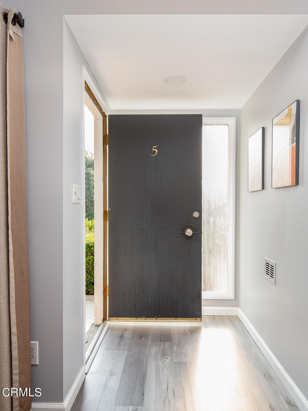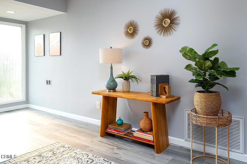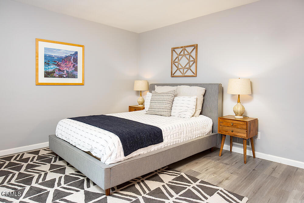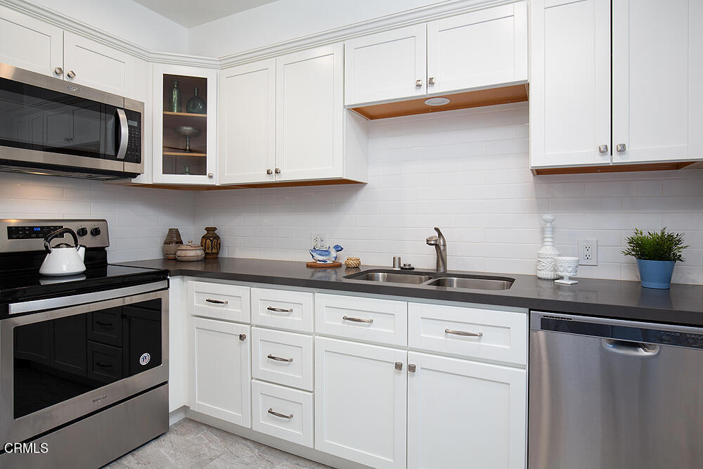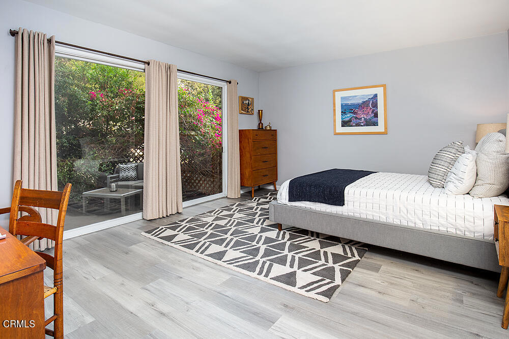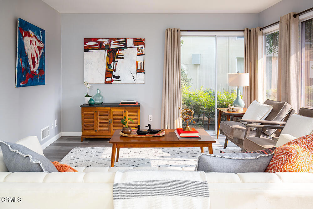 Plaza del Arroyo, by noted architect Lionel Mayell, overlooks the arroyo seco ravine and the Colorado Street bridge on the bluffs of Pasadena's east arroyo. Providing easy access to Old Town, the Rose Bowl and aquatic center, and a fantastic residential neighborhood rich in architecturally significant estate properties-this fully renovated mid-century condo provides for all utilities included in the monthly HOA fee of $476.10. A large, bright open living room and dining area overlooks the front terrace and grounds. The designer kitchen includes solid surface counters, new cabinetry, a stainless appliance suite--including a dishwasher and an in-kitchen laundry area in the European tradition. The large bedroom retreat includes an updated master bath with a separate tub and shower, double sinks as well as abundant closet and storage space in the dressing area. A private patio off the bedroom is the perfect amount of garden space to curate. In the spirit of Villa San Pascual or Whispering Waters, Mayell's Plaza del Arroyo is pet friendly and is comprised of 20 units contained in 5 separate buildings oriented around lushly landscaped grounds with a center fountain. Unit 5 is a ground level, single story condo. An enclosed parking spot is included with additional street parking available by permit.