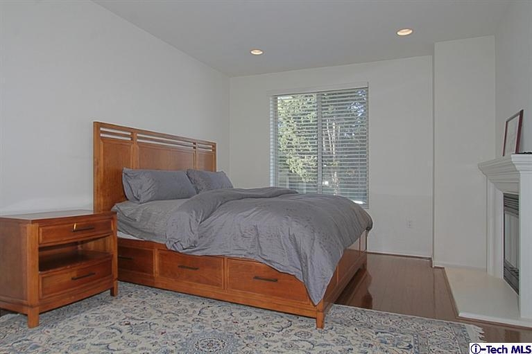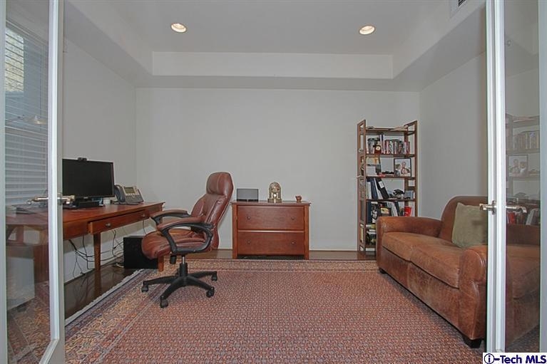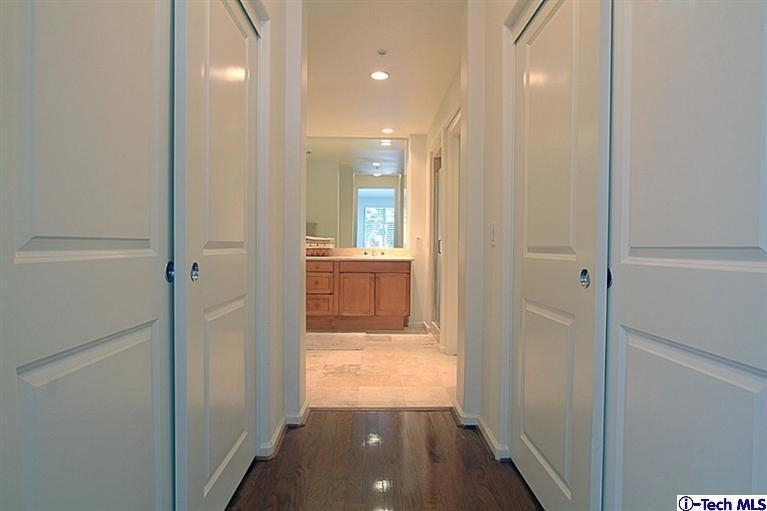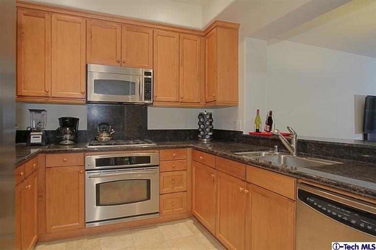 Large luxury condominium at the Quattro Blu in the Playhouse District of Pasadena near South Lake & Old Pasadena, shopping.Shopping. Walk-able to fine restaurants & entertainment. This end unit Townhome has a lg. private, ground level patio leading to the living room with hardwood floors (up & downstairs) Travertine tiled entry, kitchen and stone countered baths. Closets everywhere, Master Bedroom has a dressing area master bath with large Oval soaking Tub, double vanity sinks, separate shower with seat, all Travertine. Unit is wired for home theater system. Dual zoned Central Heating and Air system. The complex is a secured gated community that features a courtyard, private gym and two side by side Parking spots. There is also a huge private storage room and guest parking.