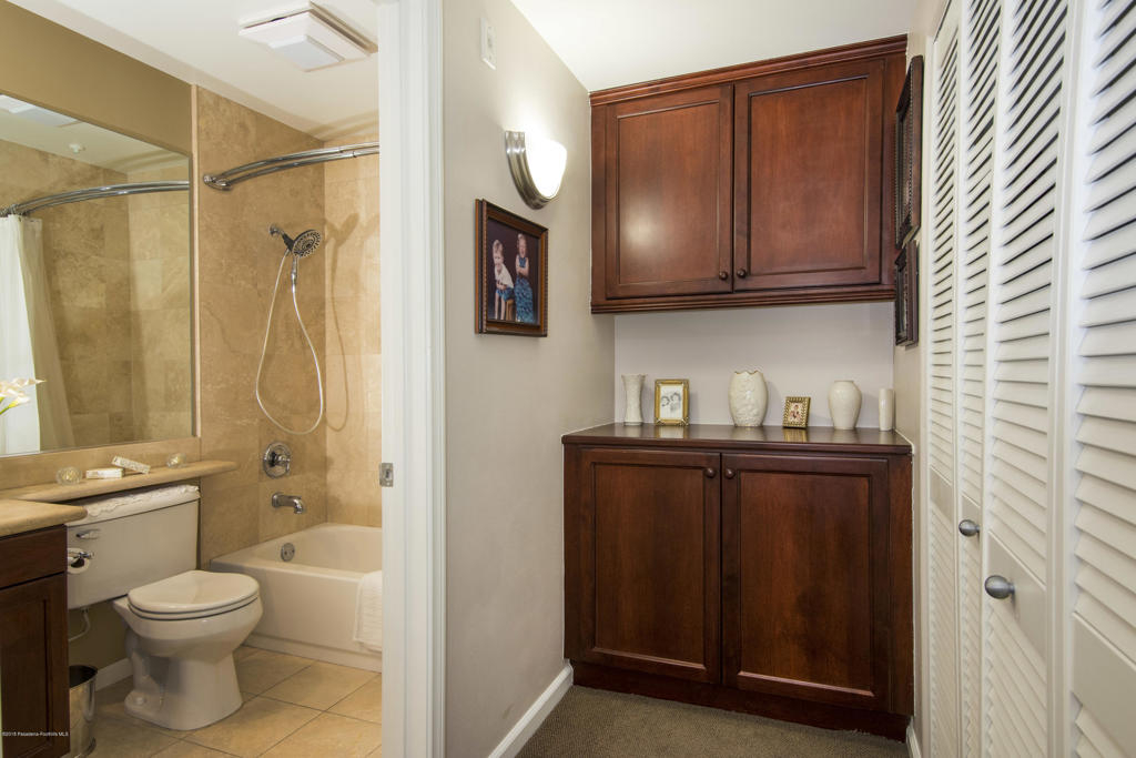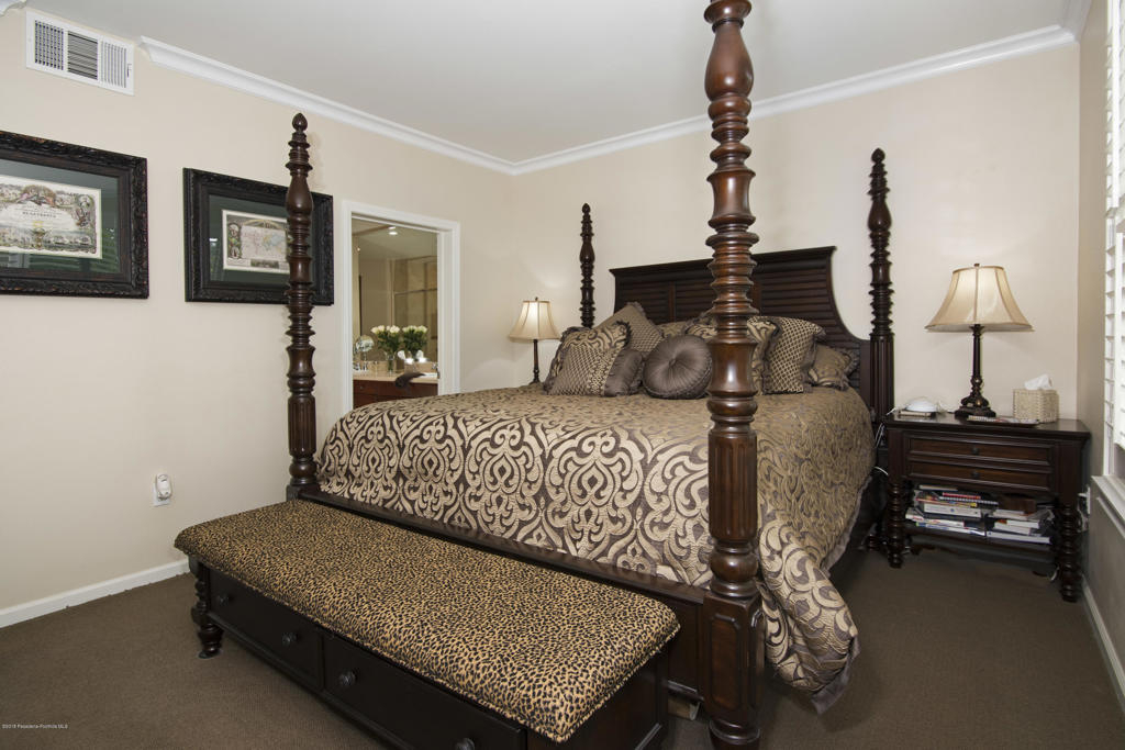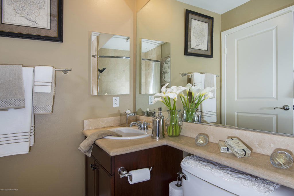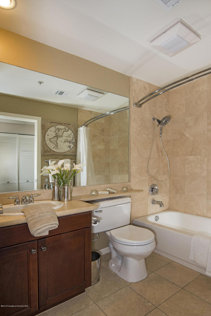 Elegant and appealing second story condominium in the historic and sought after Pasadena Playhouse District. A delightful and distinguished, circular entry with travertine flooring introduces you to an open dining room & living room concept. A fireplace, plantation shutters, high ceilings and crown moldings are details not to be missed. The 'like new' kitchen with granite counter tops, rich wood cabinets, and stainless steel appliances overlooks the living room. Nice balanced disposition of a master suite and a junior suite on opposite ends of the floor plan with a rare third bedroom and full bath in a central location. Private and romantic patio atop a giant, blooming Powderpuff tree offers a lovely outdoor retreat for wine tasting and grilling. Two underground side by side parking spaces and a generous sized private storage unit are below along with an abundance of guest parking. Walk-score wonder location, just steps from Laemmle Theater, Pasadena Playhouse, Vroman's, Target, Urth Cafe, South Lake Shopping & Hot-Spot Restaurants. Public transportation is aplenty and close & easy Freeway access. An ideal urban choice!