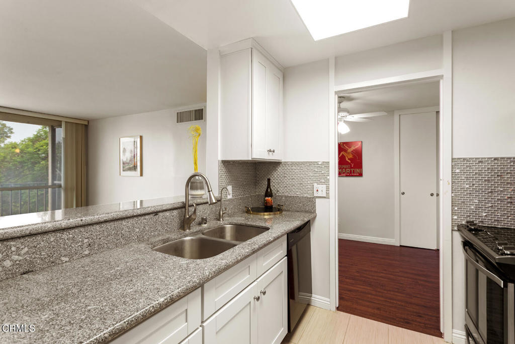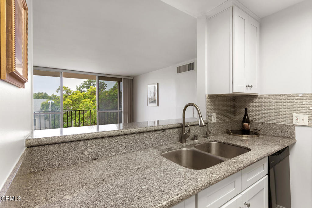 Updated single-level condo with tree top views is central to many of Pasadena's best offerings including South Lake Avenue Shopping District, Playhouse District and Old Town. Extremely light and bright south facing residence has an open floor plan with floor-to-ceiling windows. Avoid any steps and have the elevator take you directly to the 4th floor with its own common sitting area. Proceed to your front door and through the formal entry to the living room with built-in storage and direct patio access to soak in views of the jacarandas and surrounding city. Remodeled kitchen with stainless appliances also enjoys serene views while opening directly to the dining area and hallway. Elegantly updated master bathroom with walk-in shower, granite counters and designer details is certain to impress. The master bedroom with windows on two sides boasts custom drapery, multiple closets and floor to ceiling windows. Other features include newly painted throughout, built-in storage, wood flooring, separate storage locker in garage, assigned parking space, earthquake insurance and electricity both included with $391 monthly HOA fee. Terrific combination of location, recent upgrades and open floor plan will impress the most discerning buyer.