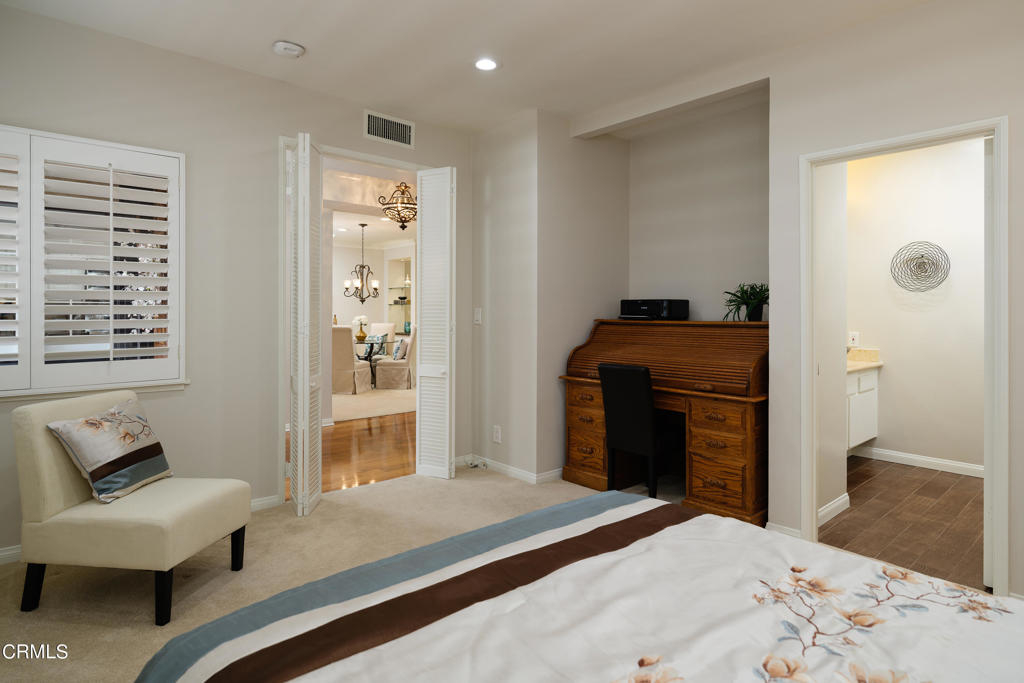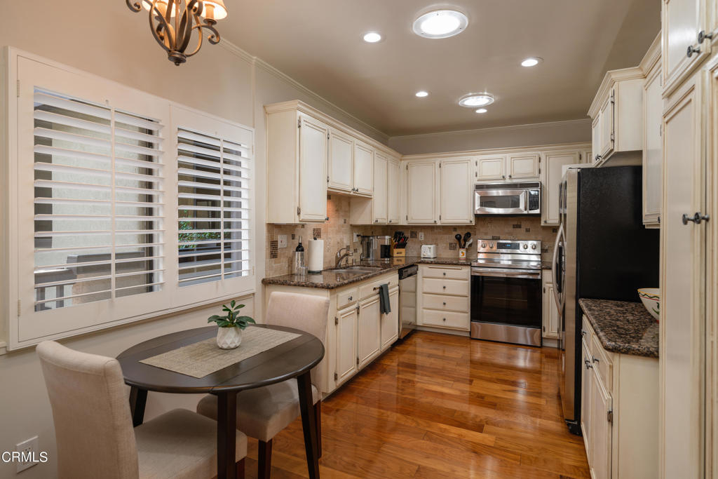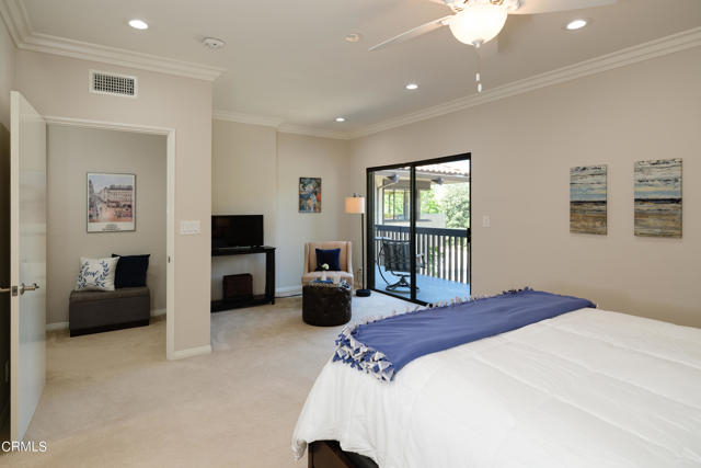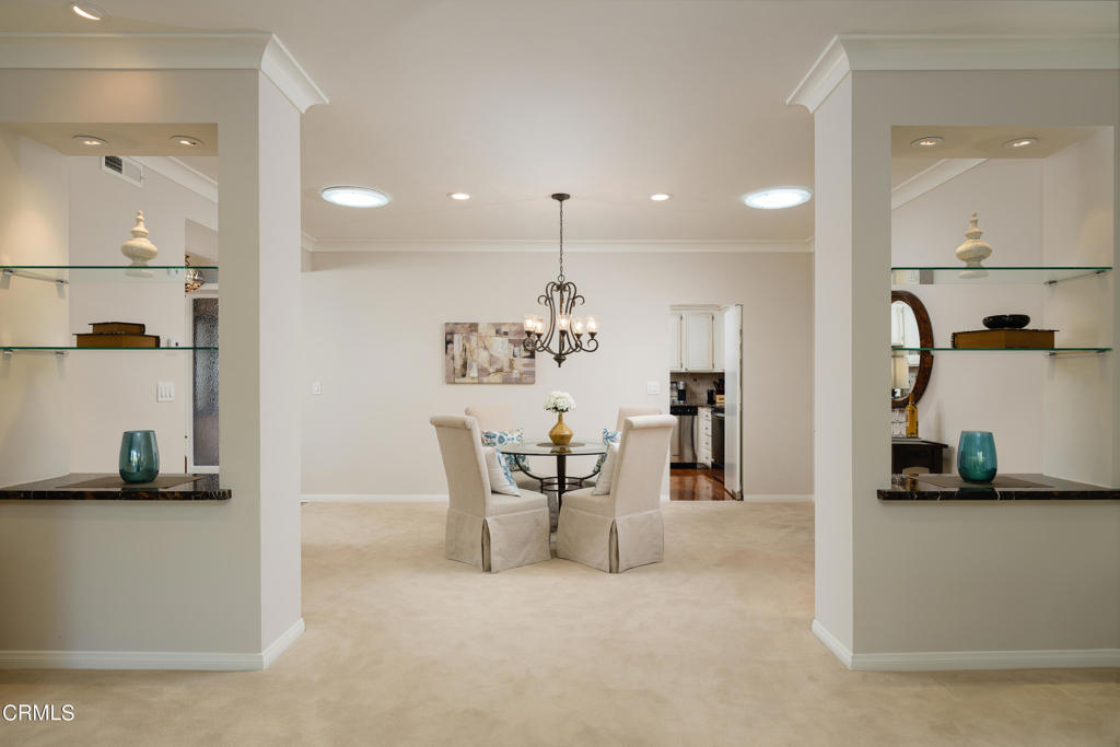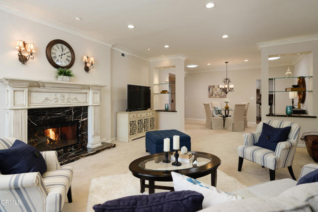 Welcome to this turnkey, upscale, 2 bedroom, 2 bathroom condo in Pasadena! This home is in an ideal location with close proximity to the 134 and the 210 Freeway, The Annandale Golf Club, The Rose Bowl, Old Town Pasadena, and a variety of shops and restaurants. Entering through the front door, one is welcomed by an entryway that features a beautiful tray ceiling and shiny hardwood floors. To the left of the front door is the stunning kitchen that features hardwood floors, granite countertops, a custom tile backsplash, solar tube lighting, recessed lighting, crown molding, and an abundance of cabinets. It also features a breakfast nook, a chandelier, and stainless steel appliances including a KitchenAid refrigerator, a KitchenAid microwave, a Samsung electric range, and a KitchenAid dishwasher. The stylish dining room features carpet flooring, crown and base molding, solar tube lighting, recessed lighting, a chandelier, and a built-in display cabinet that is perfect for showcasing photos. The dining room seamlessly opens to the living room which features recessed lighting, base molding, a cozy gas fireplace with marble finishes, and a sliding glass door that leads to the private balcony. On the other side of the home sit the two bedrooms and the two bathrooms. The first bedroom features recessed lighting, a desk area, and an ensuite bathroom that has a vanity area, base molding, a glass enclosure shower with tiling that extends to the ceiling. The oversized primary bedroom has crown molding, a ceiling fan, and a sliding glass door that leads to the private balcony. The ensuite bathroom features a large vanity with stone countertops, two sinks, a walk-in closet, and an oversized glass-enclosed shower with tiling that extends to the ceiling. There are many things to love about this home, especially all the amenities included in the HOA. Some of those amenities include a swimming pool, a spa, a newly renovated cabana, two subterranean parking spots, a storage unit, and even Rose Parade perks! Entertain guests by the pool on a warm day or enjoy dining al fresco from the balcony in this home! With the allure of the great location, the spacious living spaces, the private balcony, and the HOA amenities, you will not want to miss the opportunity to call this Pasadena home yours!