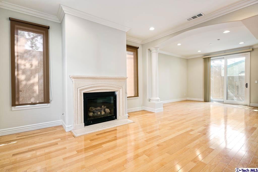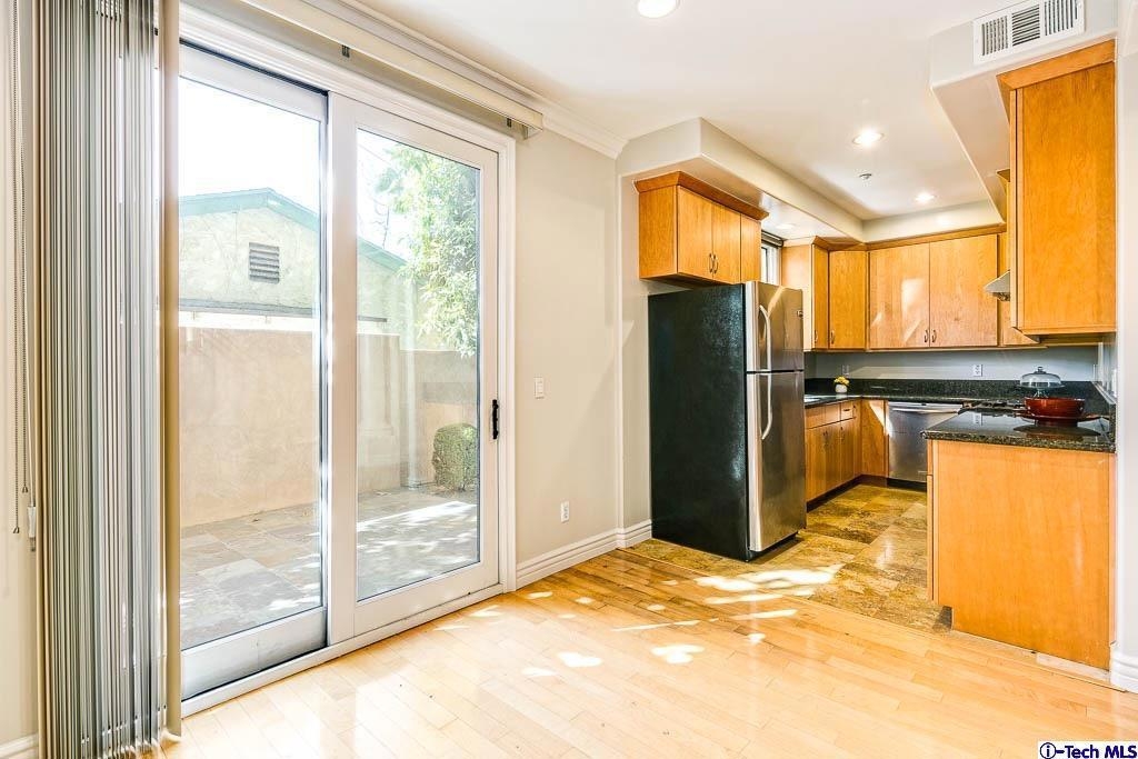 Elegant Mediterranean townhouse with modern and sophisticated amenities. Stroll through the picturesque courtyard lined with beautiful fountains and landscapes. This end unit offers maple hardwood floor, granite countertops, double paned windows, a formal entry, and travertine stone tiled bathrooms. Relax in front of the cozy fireplace or take in the sun on the private patio. 3 spacious bedrooms including a walk-in closet in the master suite. Bonus space for office/den. 2 car garage with storage space and in-unit laundry. Conveniently located near shops, restaurants, Metro. This townhouse combines comfort and the convenience that Pasadena has to offer.