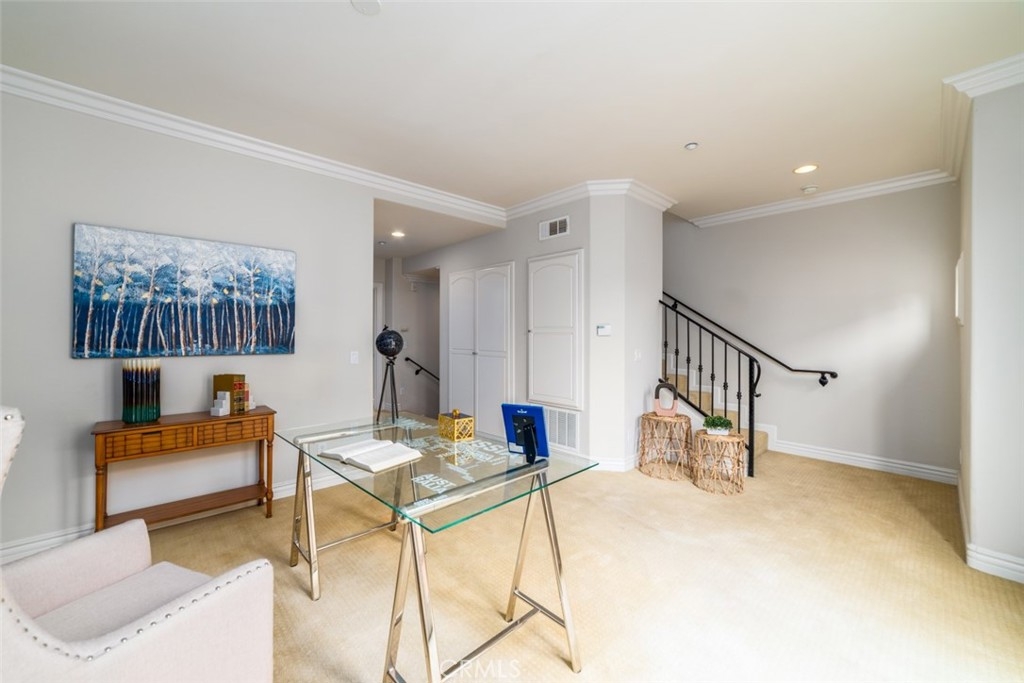 A Beautifully-made Luxury Townhome! With relaxing courtyard fountains, lush landscaping, and custom designed wrought iron accents, this complex offers an elegant combination of luxury amenities & Mediterranean architectural design. Varying between two & three story floor plans, each unit is highlighted by its exquisite surfaces such as solid maple hardwood & marble flooring, granite counters, travertine stone tiled bathrooms, high density premium fiber carpeting, and expert finished smooth walls. In addition, each residence has its own private one or two car attached oversize garage with plenty of storage space, a private patio, in-unit laundry room, double-paned windows, and a cozy fireplace. Throughout each of these bright and elegantly inviting residences, you'll notice an attention to detail that is rare in construction.
