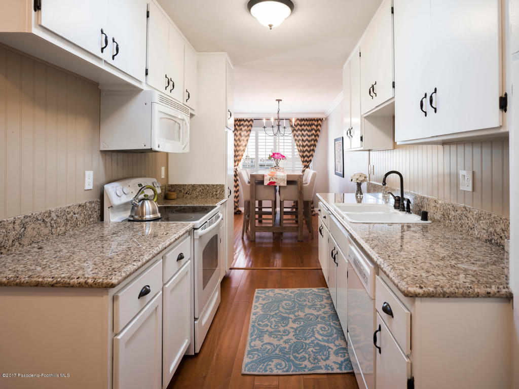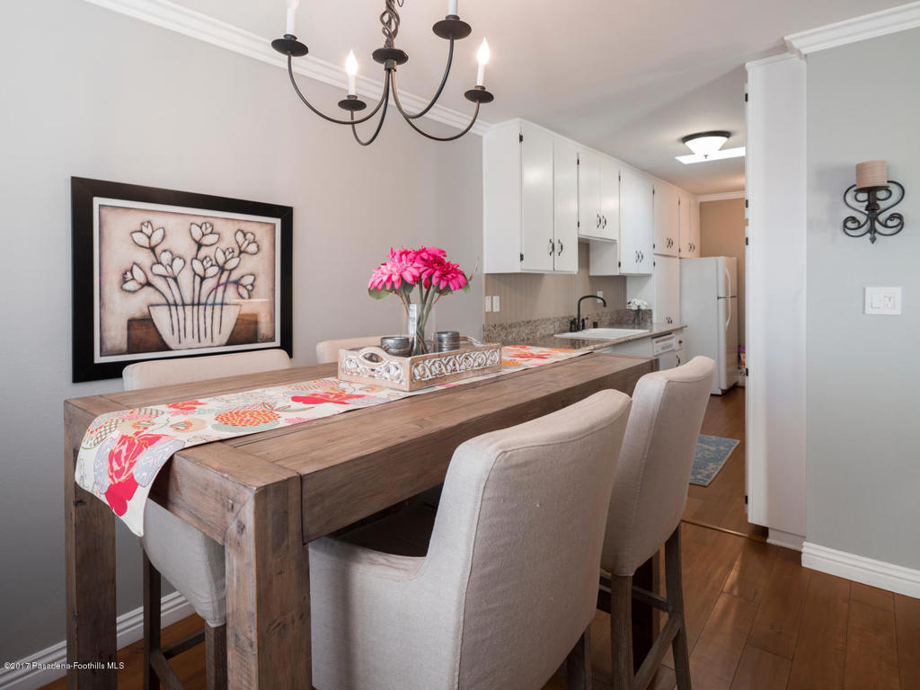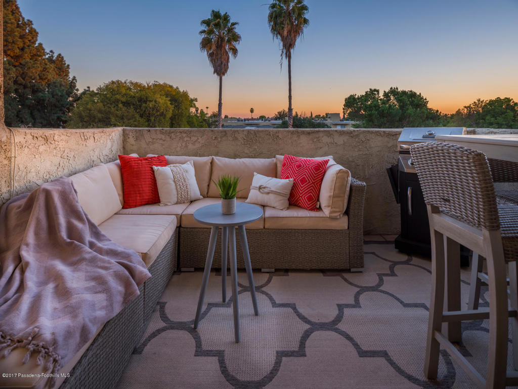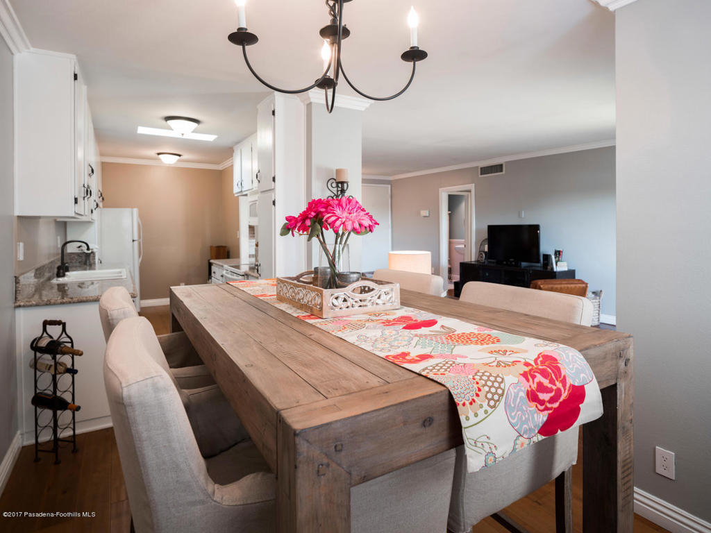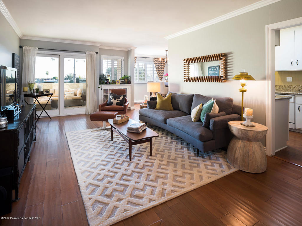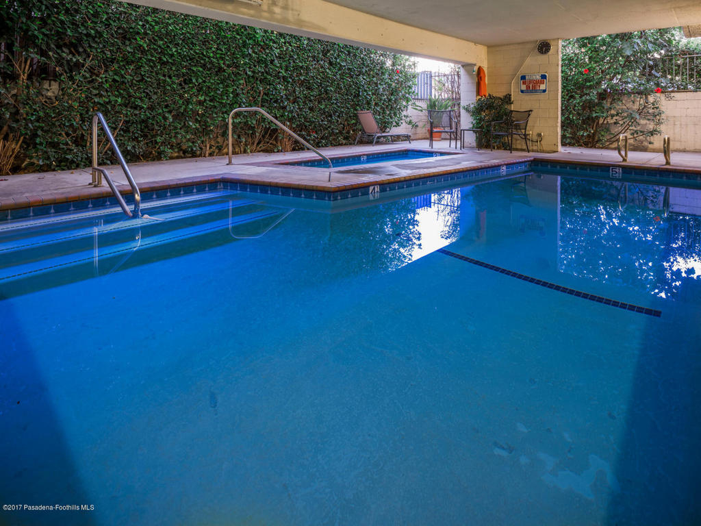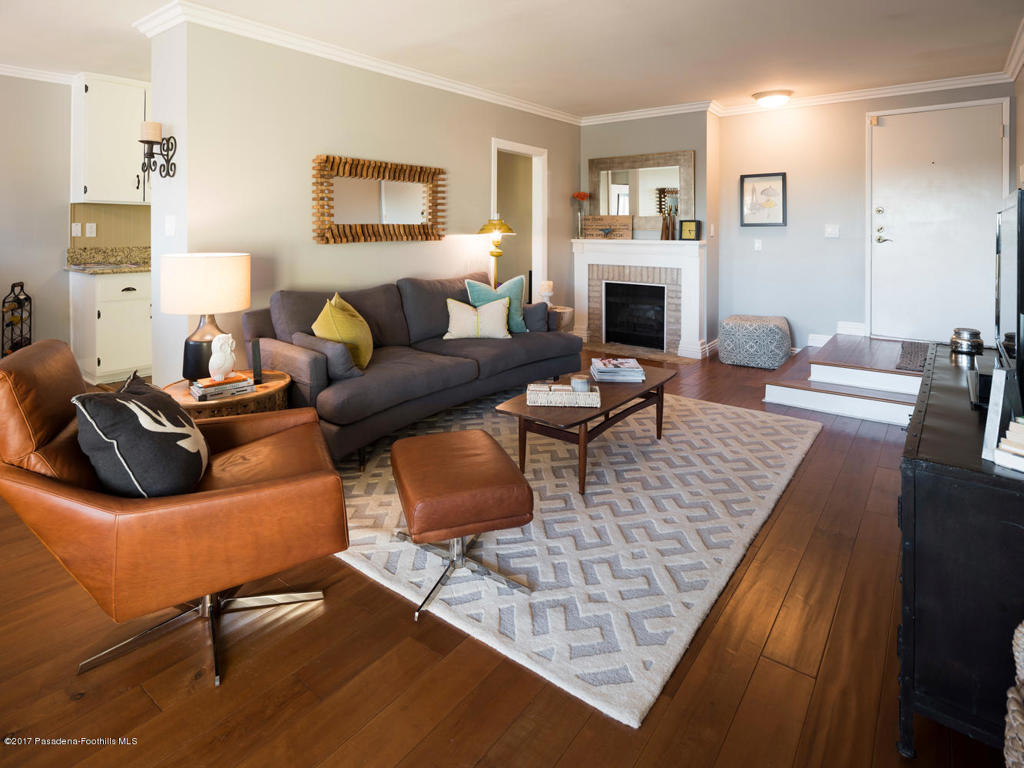Top floor highly updated condo with views. With one of the best locations in the building, this 1 bedroom, 2 bathroom single level condo is the cream of the crop. The inviting and modern floor plan features an open living room with fireplace that leads to the private balcony with views. The home includes a kitchen with granite counter tops and plenty of storage, a dining room, updated bath for your guests and a large master bedroom with lots of closet space including a separate vanity and walk-in closet. Updates include: Wood Flooring, plantation shutters, crown molding, fully remodeled master bathroom with marble countertops and subway tile, newer carpet in master bedroom, built-in closet organization, and renovated brick fireplace. Very low HOA dues,close proximity to Old Town Pasadena, South Lake Avenue, shopping, restaurants, and 210 freeway access. Come view this gorgeous home, you will not be disappointed!