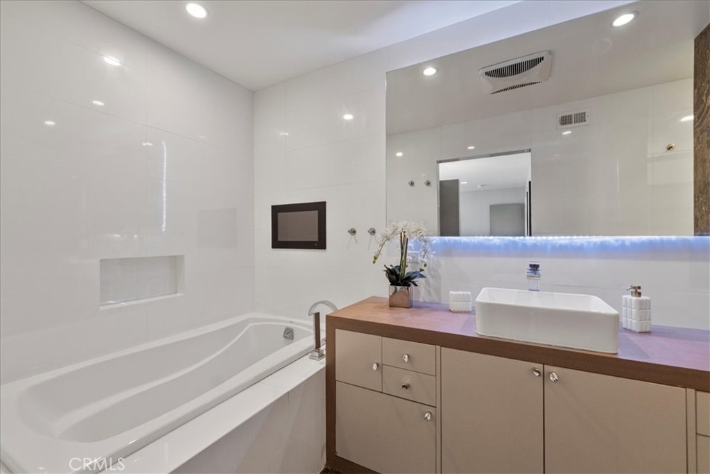 Welcome to 866 Sierra Madre Villa Avenue, a beautifully renovated condominium nestled in the desirable Lower Hastings Ranch neighborhood of Pasadena. Offering 3 bedrooms, 2.5 bathrooms, and 1,839 square feet of thoughtfully designed living space. This home delivers comfort, functionality, and modern elegance. Step inside to discover a bright and airy interior, enhanced by abundant natural light, central air and heating, and captivating mountain views. The open-concept floor plan seamlessly connects the living room, dining area, and kitchen—ideal for both daily living and entertaining. Notable design features include recessed, dimmable lighting throughout, LED mood lighting in the main living areas, and a striking floor-to-ceiling mirror complemented by a modern chandelier at the stairway. The living room is anchored by a built-in entertainment console, while the dining area boasts a custom wine rack and wine cooler. The chef-inspired kitchen features ample cabinetry, a walk-in pantry, a built-in coffee machine, a luxury kitchen faucet with pull-out spray, and premium finishes throughout—perfectly blending convenience with style. All three bedrooms are located on the upper level, including a luxurious primary suite with a spacious walk-in closet, LED mood lighting, and a spa-style bathroom. The en suite features a shower system and a built-in screen above the soaking tub, offering a private retreat within your own home. Additional highlights include: a generous private patio off the main living area; dedicated laundry space with washer, dryer, and built-in shelving. A whole-house water filtration system ensuring clean, great-tasting water from every tap. Keyless entry to the main gate, front door; Spacious two-car garage plus additional storage or workspace. The community offers resort-style amenities including a swimming pool, spa, and convenient guest parking near the entrance. Situated in a prime location, this home is just minutes from Trader Joe's, Whole Foods, Sprouts, and Amazon Fresh, with easy access to the 210 Freeway. Residents also enjoy proximity to the festive annual Upper Hastings Ranch Holiday Light Up event. This move-in-ready residence offers a rare blend of style, convenience, and sophistication in one of Pasadena’s most sought-after neighborhoods. This home delivers not only a place to live but also a lifestyle worth investing in.
