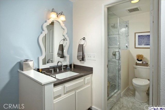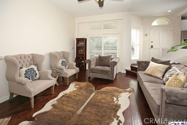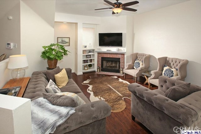 Beautiful home in the heart of Pasadena. Perfectly decorated with gorgeous hardwood floors, plantation shutters, high-end finishes and a location that can't be beat! Near all the trendy restaurants and retail stores on Lake Avenue and the gorgeous campus of Caltech. One of the few front exterior units in the complex with a front door leading to the sidewalk, the location is prime! The front door opens to a charming living room with faux brick fireplace, built-in shelves and sliders to a private front patio. The dining area is adjacent to the center island kitchen, complete with elegant quartz counters and stainless steel appliances. The master bedroom has a private bath and balcony overlooking the lush grounds. The second bedroom also has a private bath, and a cozy window seat. Perfect for professionals, students, or anyone looking to enjoy the best Pasadena has to offer!