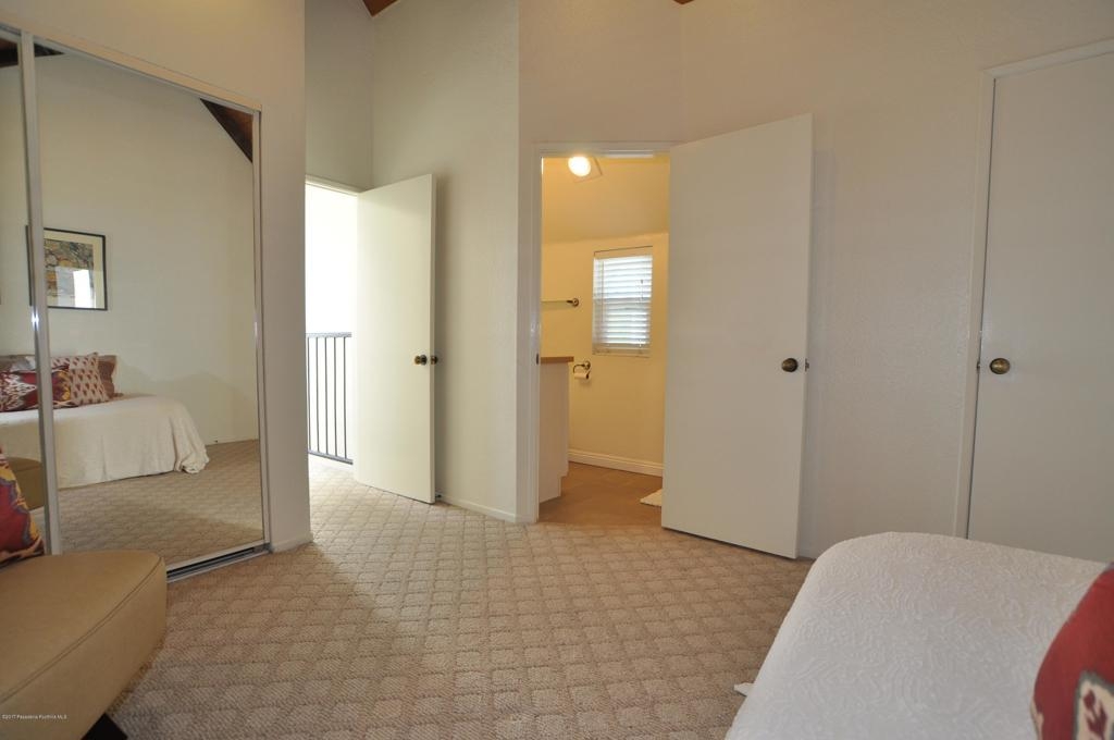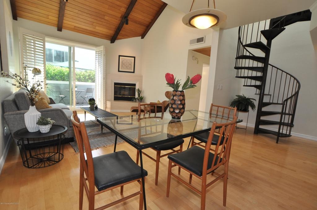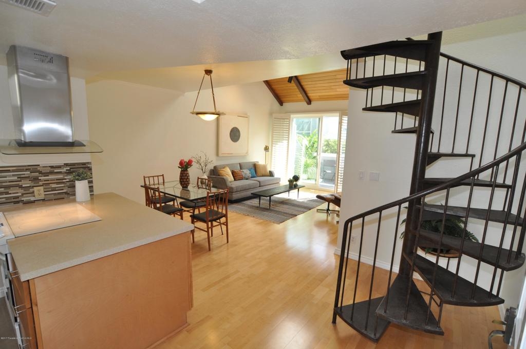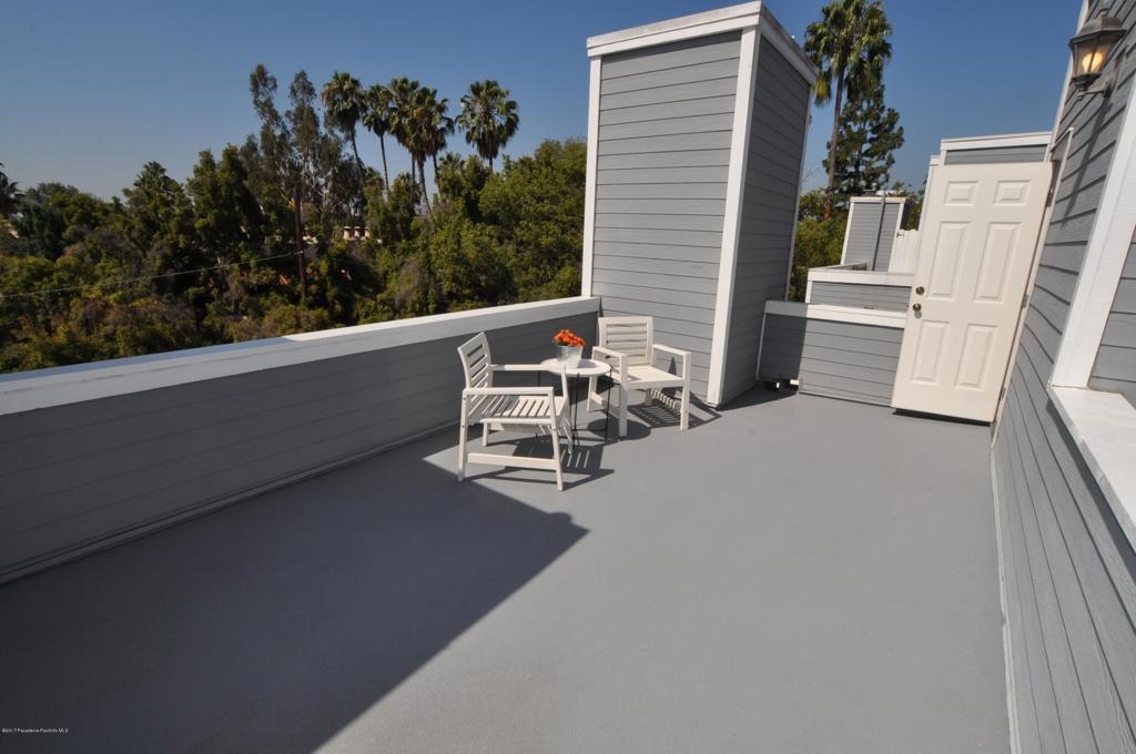 Desirable 2 bedroom, 2 bath penthouse-style corner unit townhouse in the elite Surfwood Point complex is located in the Caltech and South Lake Avenue neighborhoods. The entry foyer yields to a spacious living room and dining area with an open floorplan, soaring ceilings and soothing tree top views. The living room has a fireplace and opens to an expansive deck. Luminous hardwood floors in the living room and dining areas, plus plantation shutters give the condo the aura of quality and sophistication. The updated kitchen includes a large greenhouse window, Corian countertops, tile flooring and all-white appliances. The downstairs master suite offers a private balcony. The upstairs master suite has dramatically high ceilings and its own amazing extensive rooftop deck for entertaining.Private laundry facilities are discreetly tucked inside a closet. HOA amenities include a pool, spa, and sundeck and elevator access to your underground 2 assigned parking spaces. The elevator also takes you up to your floor entry.