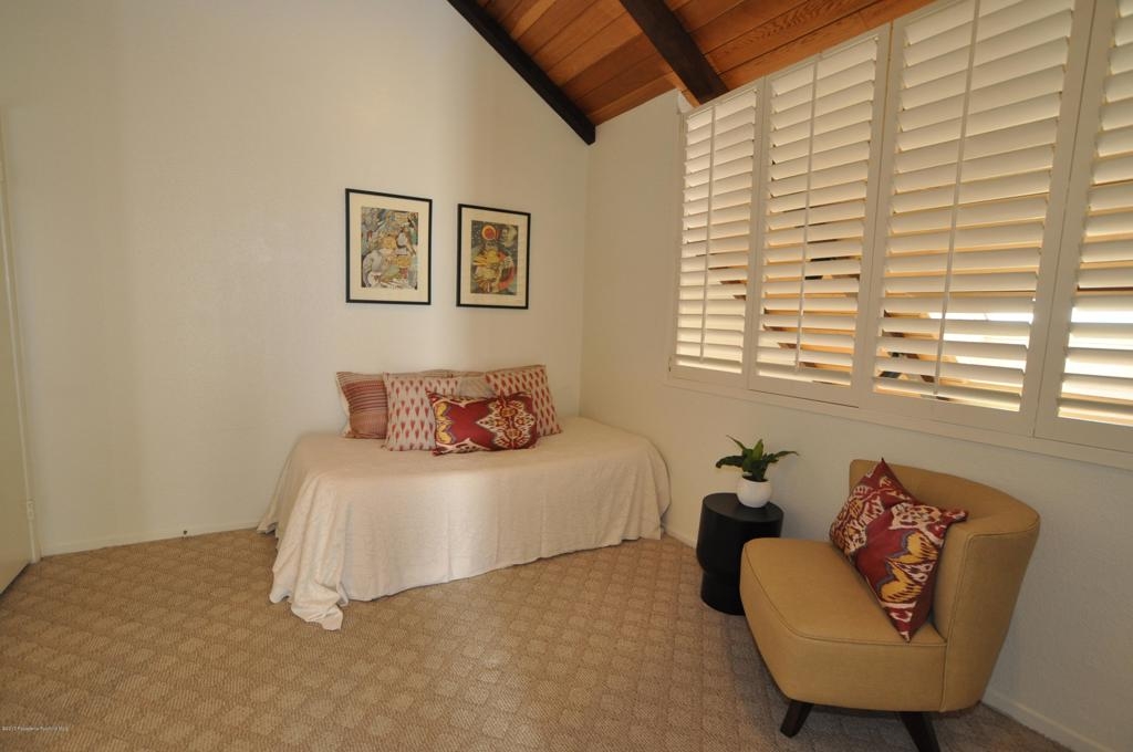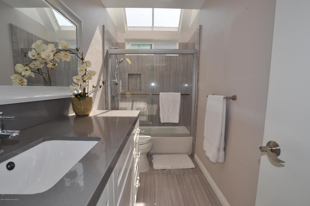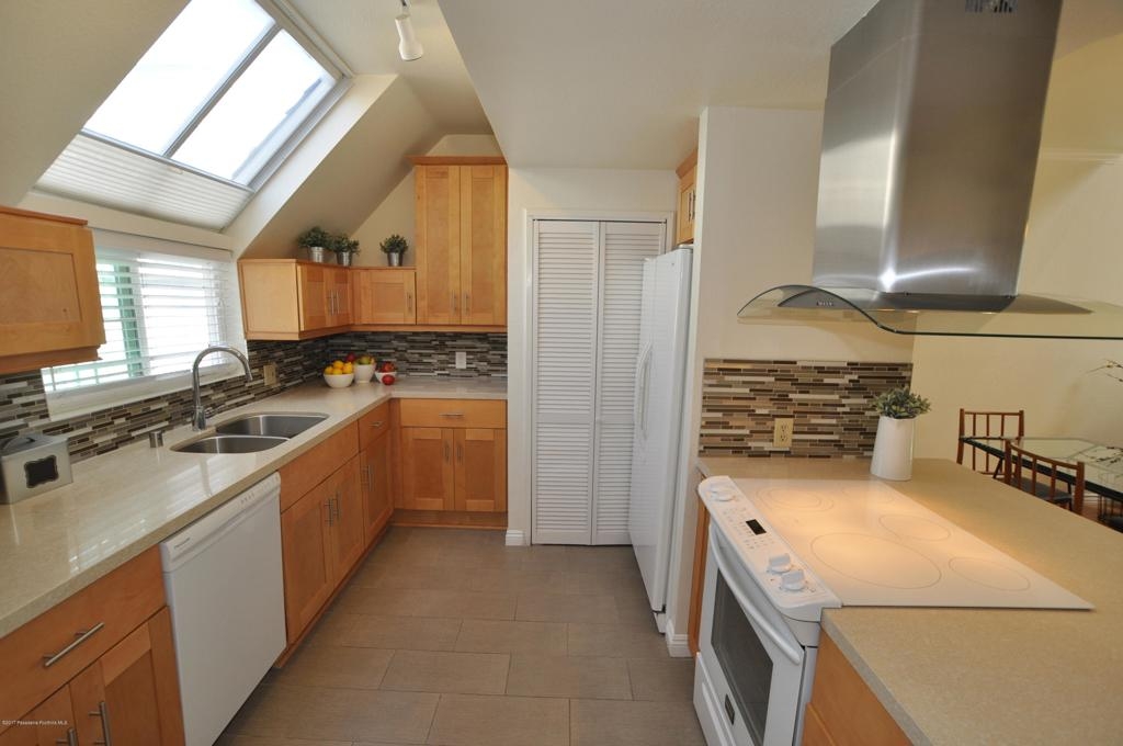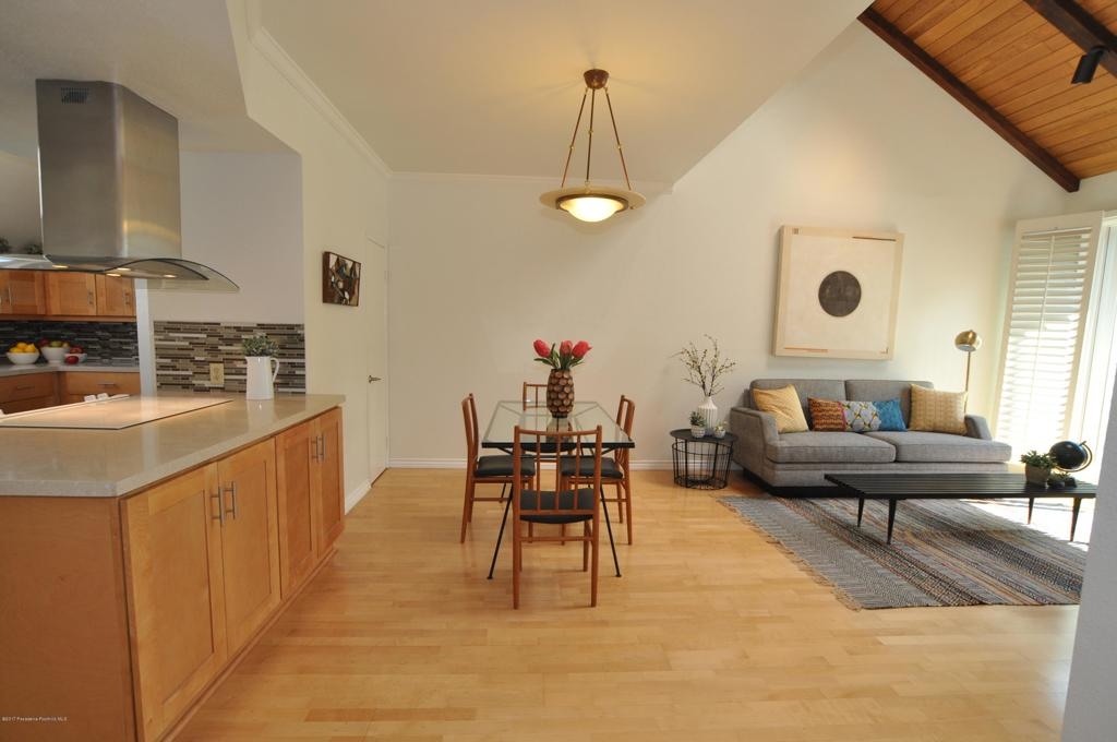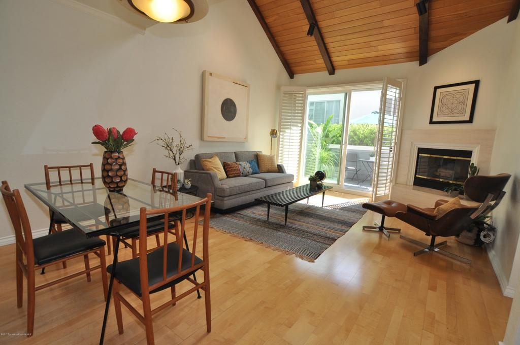 Desirable 2 bedroom, 2 bath penthouse-style corner unit townhouse in the elite Surfwood Point complex is located in the Caltech and South Lake Avenue neighborhoods. The entry foyer yields to a spacious living room and dining area with an open floorplan, soaring ceilings and soothing tree top views. The living room has a fireplace and opens to an expansive deck. Luminous hardwood floors in the living room and dining areas, plus plantation shutters give the condo the aura of quality and sophistication. The updated kitchen includes a large greenhouse window, Corian countertops, tile flooring and all-white appliances. The downstairs master suite offers a private balcony. The upstairs master suite has dramatically high ceilings and its own amazing extensive rooftop deck for entertaining.Private laundry facilities are discreetly tucked inside a closet. HOA amenities include a pool, spa, and sundeck and elevator access to your underground 2 assigned parking spaces. The elevator also takes you up to your floor entry.