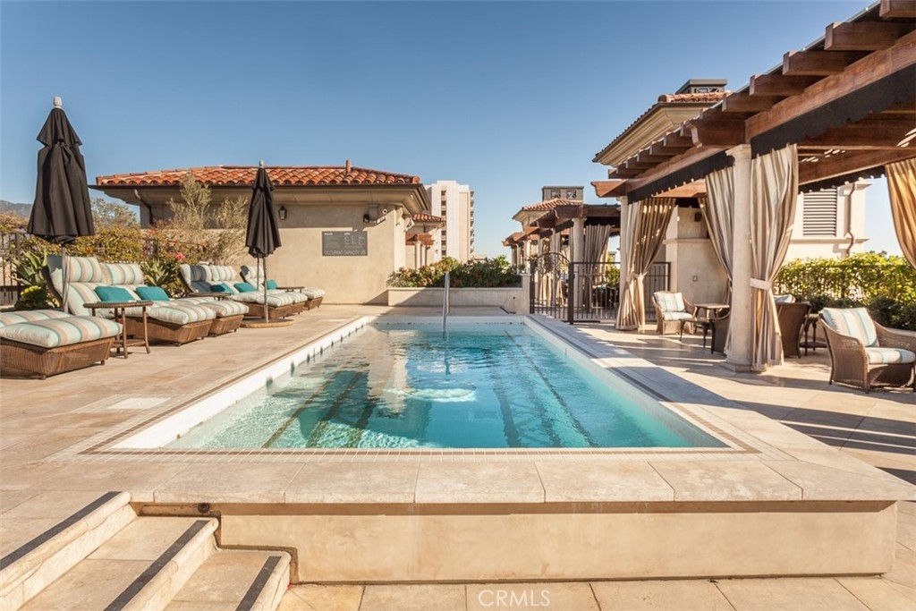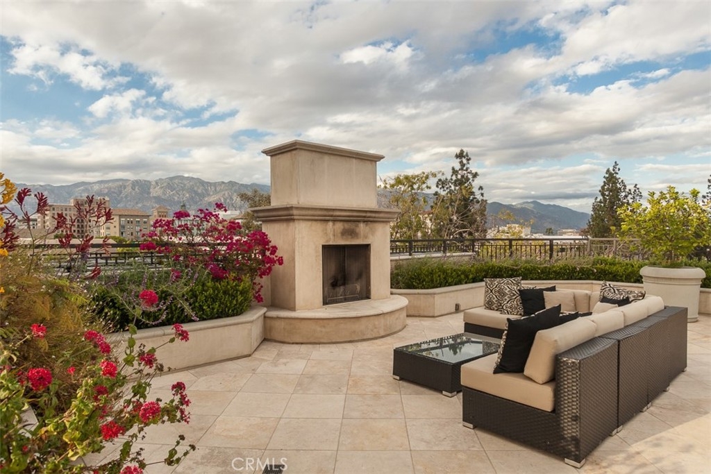 Welcome to Terra Bella. Location and amenities are the highlight of this beautiful 2 bedroom, 2 bath top floor condo. It has the feel and privacy of a single-family home and the amenities of a five-star resort. The elevator opens up to a private foyer, shared with only one neighbor. The amenities include a grand salon/conference center with a full kitchen and a rooftop never seen before in Pasadena featuring an open glass gym, swimming pool, jacuzzi, beautiful cabanas, full catering bar, large fire pit, multiple fireplaces all surrounded by panoramic views of the San Gabriel Mountains. Inside this newly renovated unit, you will find beautiful high ceilings that let in an abundance of natural light, a spacious living room with a gas fireplace and new wood flooring. The kitchen is equipped with Viking Professional appliances, Italian cabinets, and marble countertops. The master bedroom has a large walk-in closet, a private fireplace, and an en-suite bathroom with multiple rainfall shower heads. This is true luxury living in the most convenient location of Pasadena.