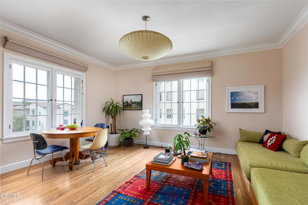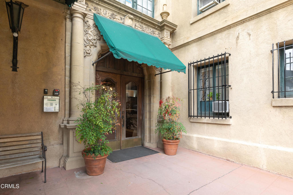 Own a piece of history! The Barcelona. This 1922 Pasadena legend is perfect for the discriminating buyer looking to live in the Pasadena Playhouse Historic District. Through the original lobby and past the front desk, one finds the original elevator, (although newly updated mechanically), that leads to this top floor one bedroom corner unit. With commanding views to the south and east, the homes feels light and bright throughout the day. In addition to the corner living room, character kitchen, full bath, and large bedroom with ample closet, there is a separate small office area just off the main room. There is an additional storage space and a large laundry area in the basement. The Barcelona is a Mill's Act building, and its location is convenient to local shopping, theaters, and the Metro Gold Line. A unique and romantic unit ready for its next steward.