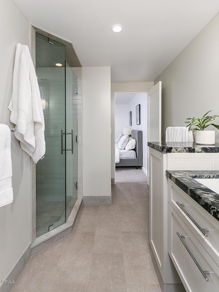 This spectacular second floor South Orange Grove condominium has been extensively remodeled with no detail spared. Offering a fresh contemporary vibe, this unit is spacious and enjoys expansive treetop views from the picture windows overlooking Millionaire's Row. The living room has a beautiful fireplace anchoring the room. There is an adjacent sizeable balcony off the living room, ideal for outdoor entertaining and year-round dining. The cook's kitchen has an open counter to the dining room and is equipped with top-of the line appliances and custom cabinets. Additionally, it has both island seating and a built-in eating nook with banquette seating. A dedicated bar, large wine refrigerator, pantry and ample storage make this kitchen highly efficient. There are two en-suite bedrooms. The master offers a large dressing area, beautiful bathroom with dual sinks and walk-in shower, and access to a private balcony. The second suite is spacious with a beautiful bath including dual sinks. Additional Features: Separate guest powder room, Laundry closet in unit, Elevator access to unit, Monthly HOA Fees $900 - Include water and electricity, Rear stair access to garage and carport.