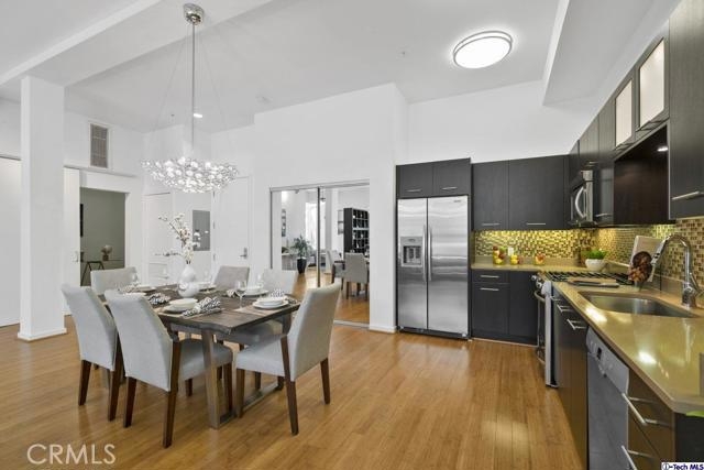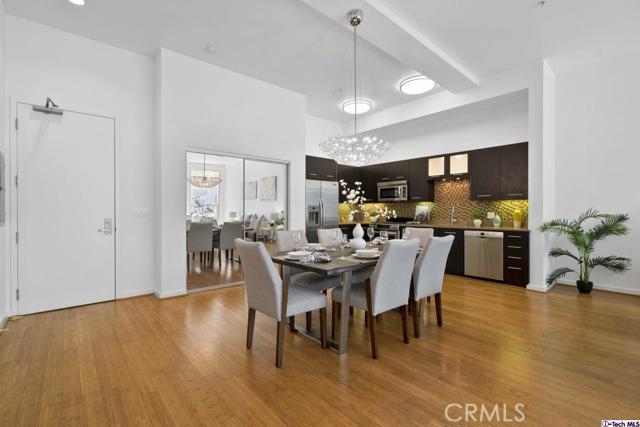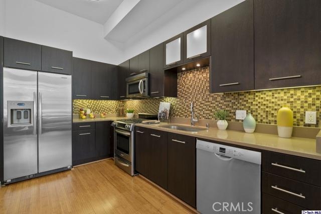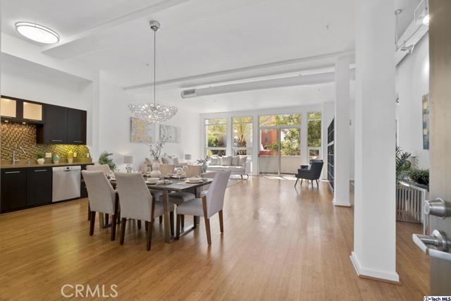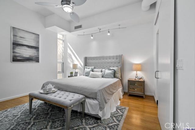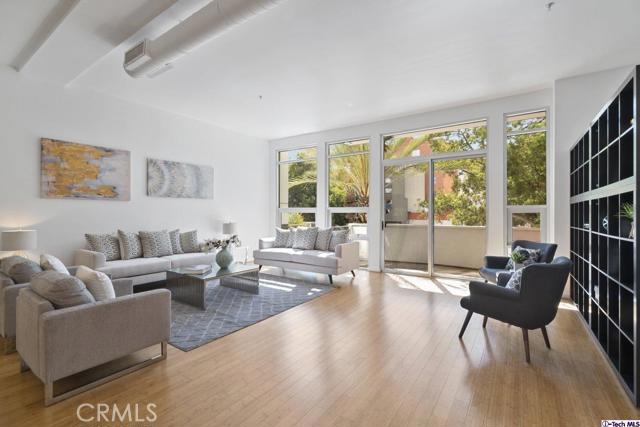 Spectacular condo residing in the coveted Old Pasadena area! With freshly painted walls throughout the whole unit, this open concept floorplan is awashed with light from the large windows and highlights the glossy wood flooring throughout. A brand-new HVAC system cools the whole space and creates a comfortable temperature for all entertaining. An artistic hanging light designates a dining area before leading off to a modern kitchen housing mocha brown cabinetry, built-in stainless-steel appliances, and glossy stone countertops complimented by a mosaic tile backsplash. The adjoined space of the expansive living room provides direct access to the private balcony where pleasant views of the bustling city streets are meant to be enjoyed. The primary bedroom includes a center ceiling fan and an en-suite bathroom complete with a dual sink vanity, a soaking tub, plus a walk-in shower detailed with a Brand-new seamless glass shower door. As part of an HOA, residents are welcome to enjoy the large open terrace offering view of the surrounding city, barbeque areas, and two parking spaces located in the gated subterranean garage. Located down the street from Central Park and the Pasadena Convention Center plus, an easy distance to local shops, markets, restaurants, and so much more in this historic city!