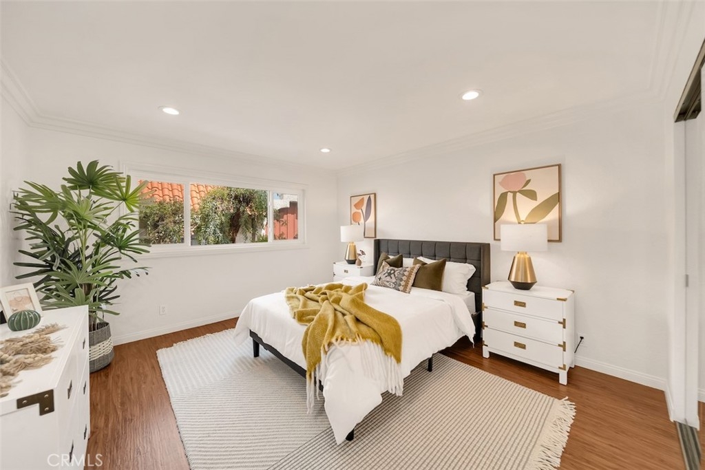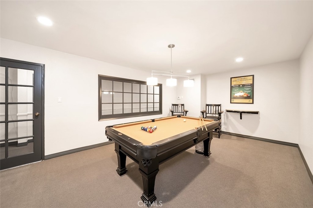 Beautiful and spacious Pasadena condo with a luxury feel offering everything a homeowner could need in the way of creature comforts. The open living area boasts a cozy fireplace with vinyl wood-like flooring and LED recessed lighting throughout. A large kitchen features stainless steel appliances and an abundance of counter space and cabinetry, sure to delight the entertaining enthusiast. There is even a fancy spice pull-out rack conveniently placed near the stove. The bedrooms are comfortably roomy; the primary has new carpet, an ensuite bathroom and a vast walk-in closet. The guest bath comes with a full shower and tub for relaxing at the end of your day. There is abundant storage space in multiple closets, tasteful crown molding, double pane windows and new paint throughout. In addition, you’ll enjoy the benefits of a Nest thermostat, a substantial private patio, and for the pièce de résistance, a billiards room located adjacent to the unit. The condo is tucked nicely into the community off of the main street. There are 2 assigned parking spaces making this a great place to call home.