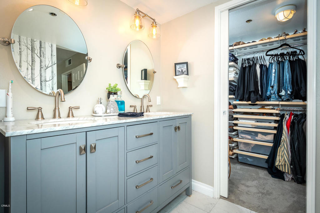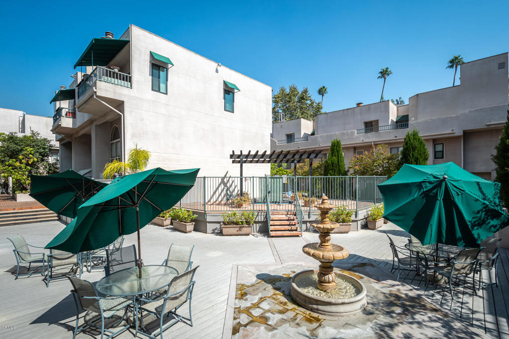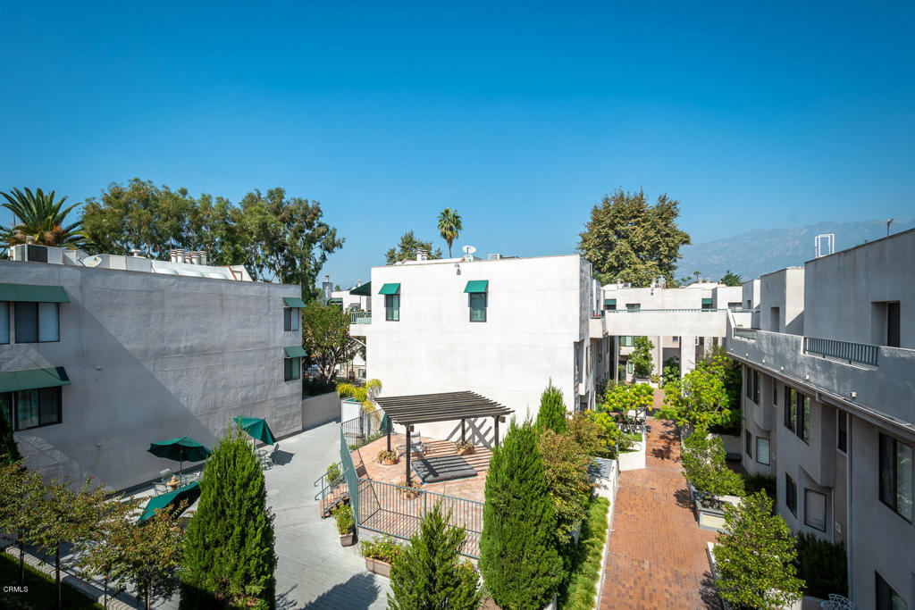 Stylish and sophisticated townhome-style condo in a prime Pasadena location. This spacious, two-story unit features two bedrooms, two and a half baths, high ceiling, oversized windows, and its own gracious patio, making indoor/outdoor living effortless. Remodeled kitchen has stone counters plus stainless-steel sink and appliances, and breakfast bar. Living room and dining areas have bamboo floors, high ceiling, fireplace, and sliding door to the patio. Upstairs are two bedrooms suites, one used by the current owner as an office. Both upstairs baths have been exquisitely remodeled within the last year, with stone-topped vanities, gorgeous tilework, and brushed nickel hardware. Other features include central air and heat with Nest smart thermostat, in-unit laundry, 2-car subterranean parking with security gates and cameras, plus ample storage. This desirable complex is well-maintained and landscaped, and offers multiple built-in BBQs, an outdoor kitchenette, sitting areas, fountain, and large spa. Minutes from S. Lake Ave, Caltech, PCC and Old Town Pasadena.