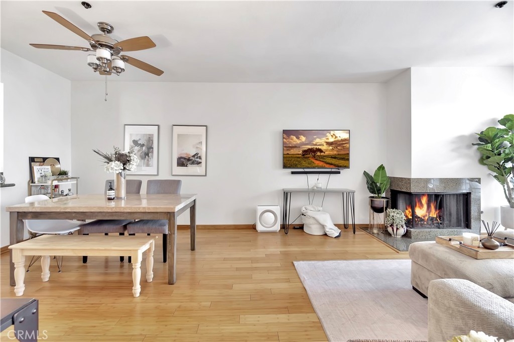 Welcome home to this highly desirable and beautiful community in Pasadena. Located in a historic neighborhood between Catalina Villas and Bungalow Heavens, this rare 2 bedroom, 2 bathroom condo was previously renovated and has been kept in pristine condition ever since. With only one common wall, this bright and spacious end unit offers maximum privacy. Upon entering, you are instantly greeted with high-quality bamboo wood floors that are consistent throughout the entire home. Immediately to the left is an updated kitchen with an ample amount of sunlight. Through the kitchen, there is an open dining area that flows into a living room, featuring a granite fireplace and a large balcony for outdoor entertaining. The balcony overlooks a courtyard filled with lush greenery that is perfect for summer BBQ and al fresco. The master bedroom boasts a his and her closet and an ensuite bathroom with dual vanity. Centrally located to all the rich and diverse entertainment, restaurants, shopping, parks, and museums, this turnkey condo awaits you!