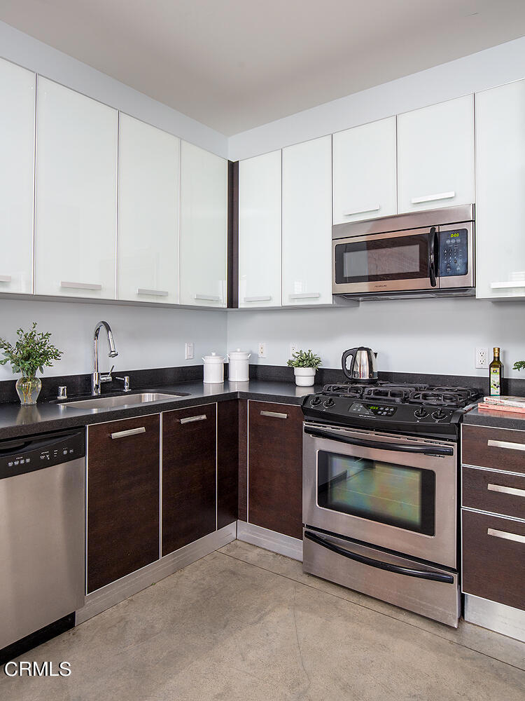 Located in the heart of Pasadena, the Livingstone, originally designed by Myron Hunt, is an award-winning historic preservation development. With a walk score of 94, the Livingstone is easily accessible to Old Pasadena, Paseo Colorado, the Playhouse District, and South Lake Avenue. This amazing first floor floor unit is one the most desirable one bedroom units in the complex. It features a bright open plan design that offers a combined living room, dining area and kitchen that is roomy and reminiscent of high-end Manhattan living. Enjoy design features that perfectly blend the old and new with exposed brick walls, scored and polished concrete floors, high ceilings, oversized double hung windows, and custom shutters throughout. Kitchen boasts plentiful custom soft close cabinetry, stone counters and stainless appliances. The primary suite offers exposed brick walls and spacious closet. The well appointed bathroom is large with custom cabinetry, stone counters, hand laid tile, and a deep luxurious soaking tub. Inside laundry with washer and dryer and additional closets for tons of storage. Also noteworthy are access to two shared and gated outdoor spaces plus assigned underground parking. Pasadena's urban lifestyle awaits with restaurants, shopping, parks, and the gold line just moments away. The best of Pasadena is just out your door.