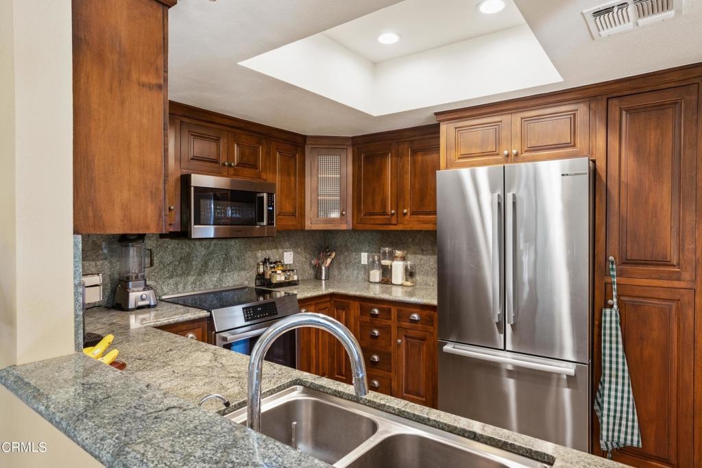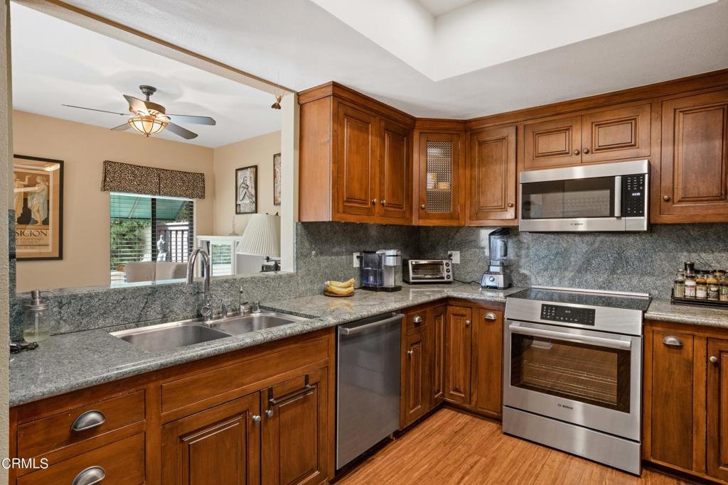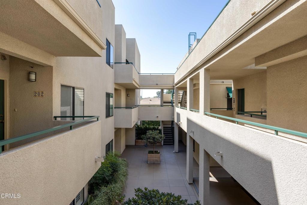 Great location (on the Southside of the complex) and style in this HARD to find THREE bedroom condo unit with a townhouse feel, featuring almost 1,700 square feet of living space. The bedrooms on the second level feature carpet with the living area on the first floor having beautiful bamboo hardwood flooring. This two-level unit is in the heart of Pasadena and has been updated to fit today's lifestyle! The open floor plan has an updated bright kitchen with granite counters with matching backsplash and stainless-steel style appliances, looking into a spacious dining area/den with built-ins and direct access to a large sunny patio, great for little ones or pets. The inviting living room off the formal entry showcases lots of natural light through the double pane windows with blinds. The main level is complete with a powder room for guest use. The well-appointed master bedroom is bright and airy that easily accommodates a king-size bed; with a good size walk-in closet and its own patio. The attached master bath offers a double sink vanity with backsplash tile that matches the shower with glass enclosure. Completing this unit are two more good size bedrooms (currently used as offices) both with built-in bookcases and hall 3/4 bath with the countertop matching the floor and shower tile. Adjacent is the laundry closet with the washer and dryer that could be stacked for more storage space if desired. The unit was converted to all-electric including the kitchen range and a heat-pump dryer, both of which still have gas connections, if desired. There are two tandem parking spaces next to the elevator with adjacent garage storage. With a Walk Score of 72 and its proximity to the Gold Line, South Lake District, Playhouse District, Paseo Colorado, Old Pasadena, restaurants and shops, including Trader Joes, Lucky Boy, Whole Foods and Houston's