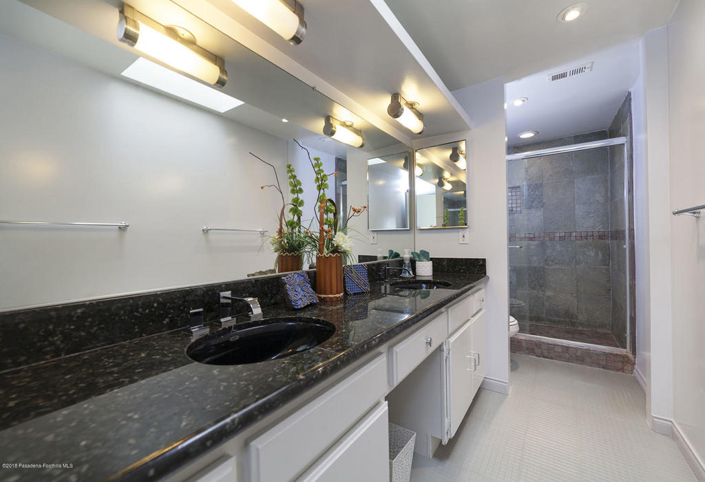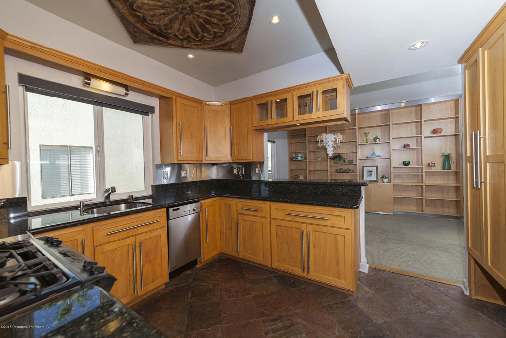 Situated on a tranquil, tree-lined street, this gorgeous condominium has been meticulously updated and shows great pride of ownership. The bright and inviting living area includes a soaring ceiling, skylights, recessed lighting, cozy fireplace, and a pair of sliding doors opening to the large balcony, where inspiring treetop and mountain views can be enjoyed. The spacious dining room, with built-in shelves and custom wired Bose speakers, flows effortlessly into the gourmet kitchen, which boasts slate tile flooring, granite countertops, stainless steel appliances, and updated cabinetry. The laundry closet, with stackable washer and dryer, is conveniently attached to the kitchen. Next to the kitchen is a cozy den with a built-in entertainment cabinet, perfect for entertaining or unwinding after a long day! Down the hall, find the spacious master bedroom with recessed lighting, 2 large closets, and a pair of sliding doors leading to the balcony. The recently updated master en-suite bathroom includes a large double sink vanity and overhead skylight, offering plentiful natural lighting. A spacious second bedroom and bathroom are conveniently located across the hallway. Ideally perched on the top floor, this condominium provides a unique blend of convenience and privacy by being steps away from the elevator and having no shared walls. Dual pane windows are also featured throughout the entire unit. The meticulously maintained complex features gated entry with security code, underground parking with two reserved spaces for the unit, and a charming courtyard with well-manicured trees, lush green shrubs, and a sparkling water fountain. Additional complex updates include newer plumbing pipes and roof. Just minutes from Old Town Pasadena, the Rose Bowl, Caltech, PCC, the Shops on Lake, metro station and the 210 freeway, this stunning home is a true gem!