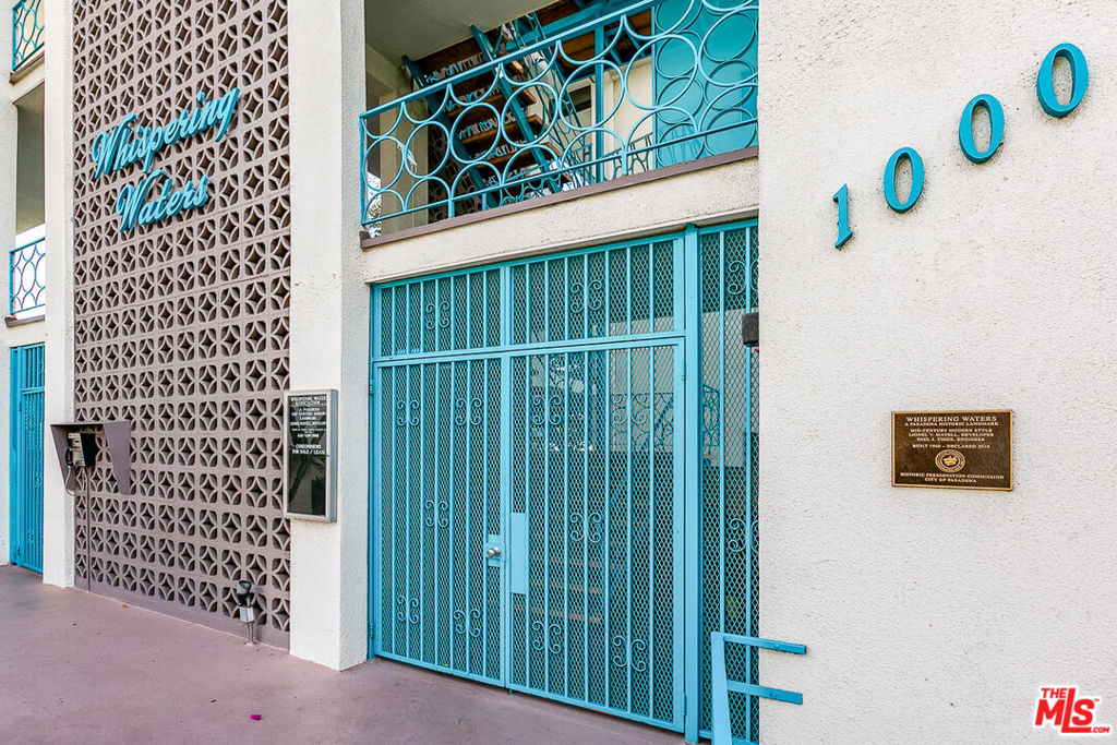 Whispering Waters, c. 1960, a Pasadena Historic Landmark and one of the area's most beloved Mid Century Modern properties, was designed by noted developer Lionel V. Mayell to bring indoor/outdoor living to apartment-dwellers through lush landscaping and panoramic views of the San Gabriel Mountains. Enjoy mid-century living at its finest in this spacious, light-filled single-story condo. This second-story two bedroom / two bathroom unit has been tastefully renovated and updated while leaving much of the original MCM charm intact, including original Pullman sinks, expansive travertine-topped vanities, and skylight-like overhead lighting in the generous bathrooms, and floor-to-ceiling sliding glass doors from the sprawling living room to the large private balcony perfect for al fresco dining. The bright kitchen offers new quartz counters paired with original ash cabinets. With a walk score of 95 you can leave your cars in the unit's two underground parking spaces and enjoy the easy proximity to some of Pasadena's best and most popular shopping, dining, and cultural institutions such as Sugarfish, Trader Joes, Nick's, The Arbour, Philz Coffee, Republik, Pasadena Playhouse and so many more. Caltech and PCC are minutes away. Hop on the bike lane outside the front door for a quick ride to Huntington Gardens or Old Town. All new electrical subpanel keeps the conveniences of modern life humming along. Mills Act designation offers owners steep reductions on annual property taxes.