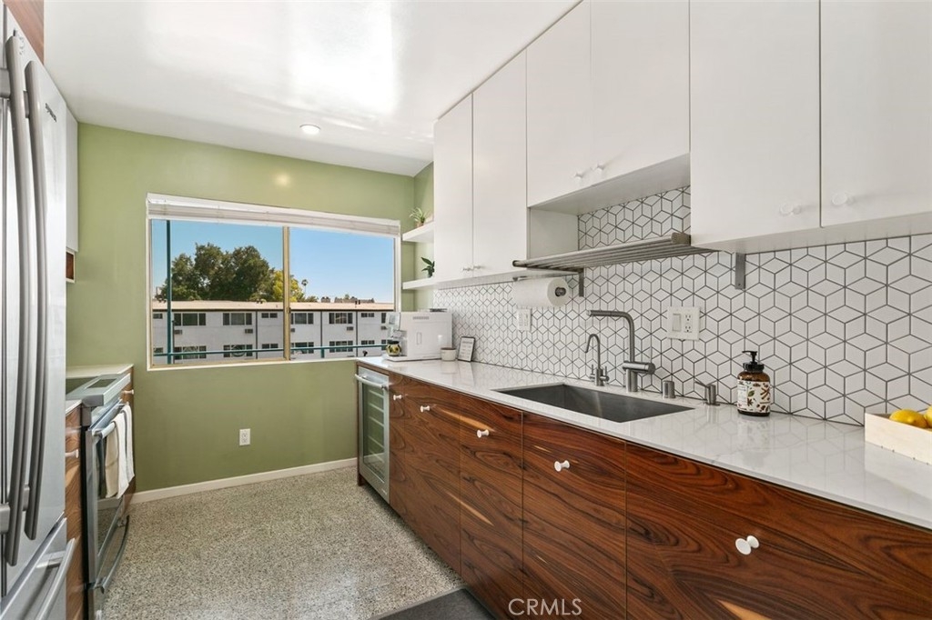 Whispering Waters, c. 1960, a Pasadena Historic Landmark and one of the area's most beloved Mid-Century Modern properties, was designed by noted developer Lionel V. Mayell offering views of the San Gabriel Mountains. This Mid-Century Modern is located on the second story with two bedrooms and two baths that have been updated and remodeled and include a stacking interior laundry unit inside. Floor-to-ceiling glass doors offer open to city light views. Head outside these doors to your north-facing balcony and enjoy views of the San Gabriel Mountains and evening sunsets. The bright and updated kitchen offers Silestone countertops and Rosewood Palisander cabinetry with all newer appliances. Enjoy easy access Pasadena's most popular shopping, dining and cultural institutions. The underground parking space has your own storage area above. The bike trail to Huntington Library and Gardens in just minutes away. Caltech, PCC and so much more are just outside your secured and gated front door. The Mills Act designation offers owners reductions on annual property taxes.