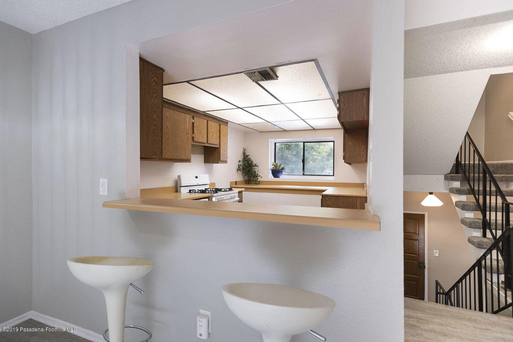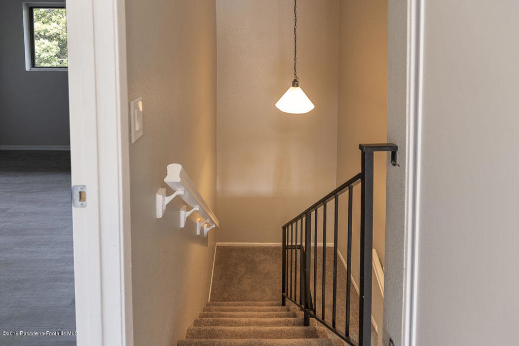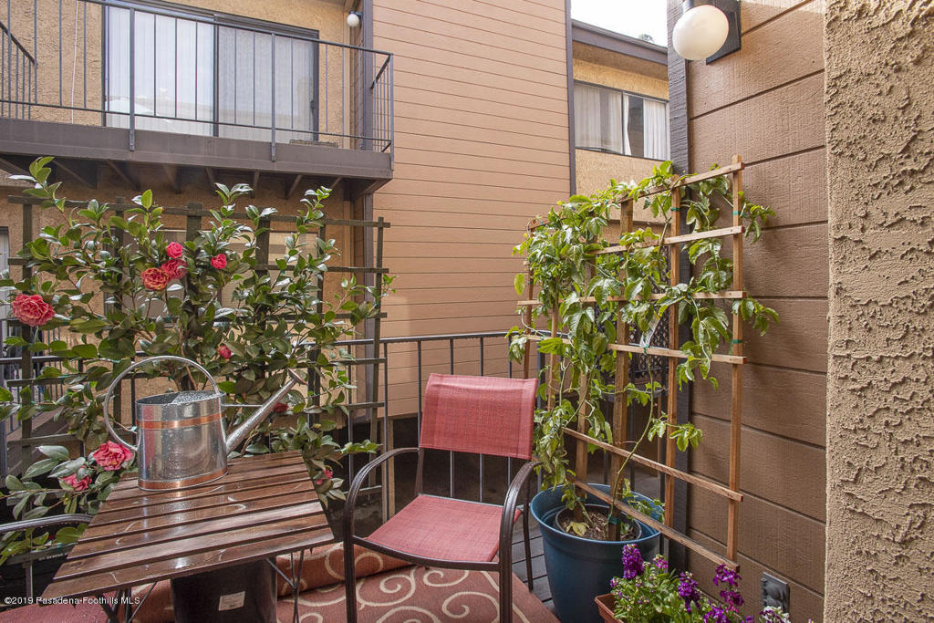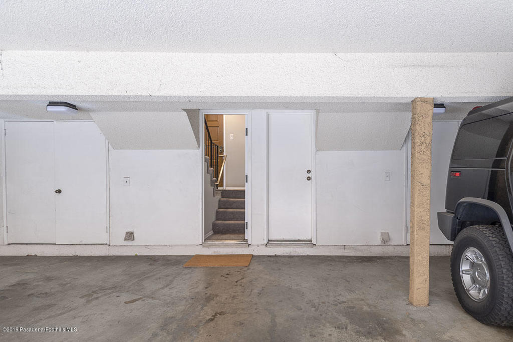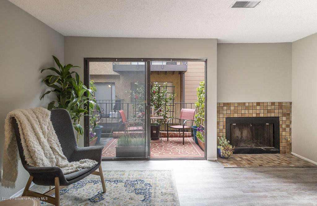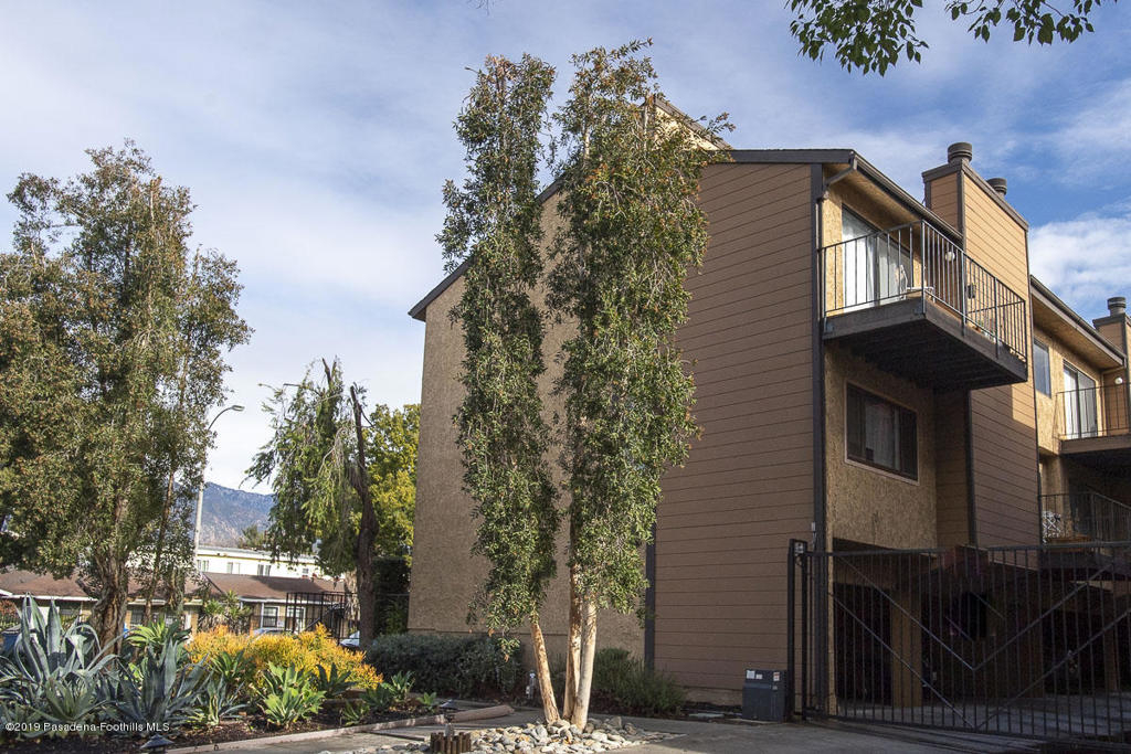 Walk-up from street level to this delightful and clean two bedroom, 1.5 bathroom townhome in Pasadena. Located in a convenient location close to CalTech,Pasadena City College, and the Playhouse District. Easy access to freeways, Gold Line, shops and restaurants. The home has been thoughtfully and recently updated with new interior paint, laminate wood flooring and light fixtures. The kitchen offers generous storage and counter space with a lovely view of the San Gabriel mountains. A fireplace and private balcony accompany the living room. Upstairs are two spacious bedrooms that share a full bath. The larger bedroom measures 13' by 10'8'. There is a dedicated laundry area with washer and dryer hookups in the upstairs hallway; there are also washer/dryer hook-ups in the covered carport area currently used as storage space. One covered parking space and direct access into the unit are under the home with gated entry from Wilson. Professionally managed community with no restrictions on rentals (long term only). An exceptional opportunity in a well maintained property.