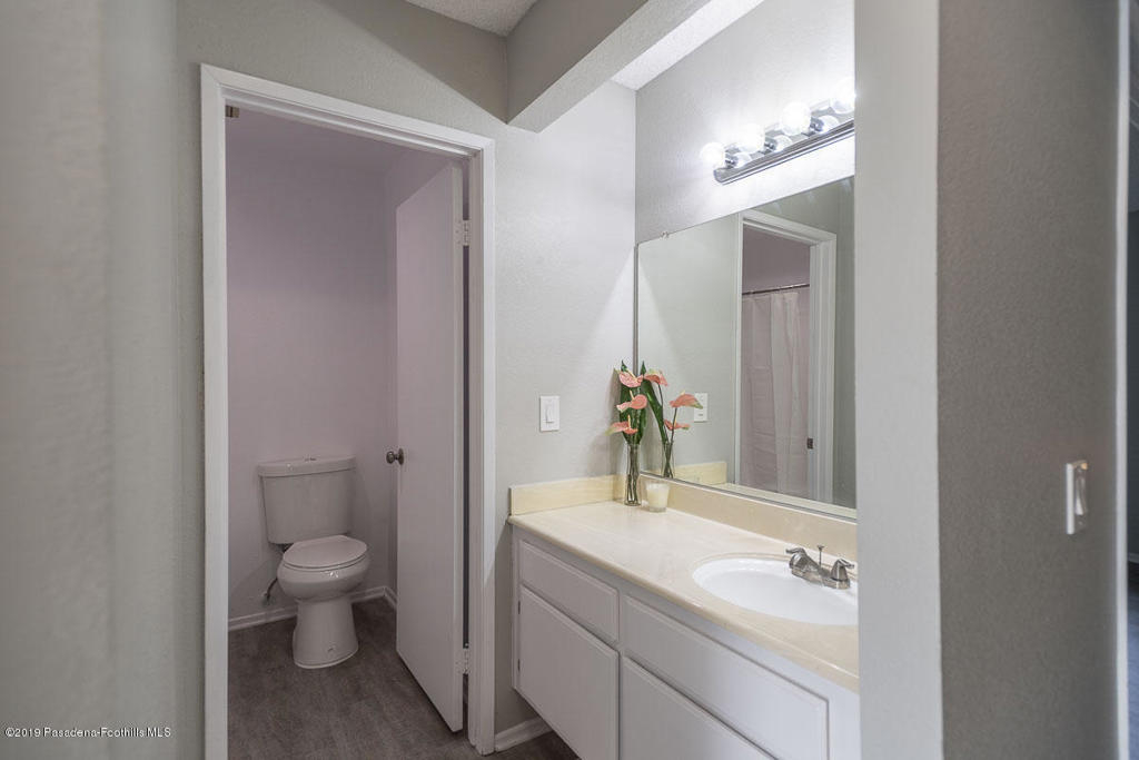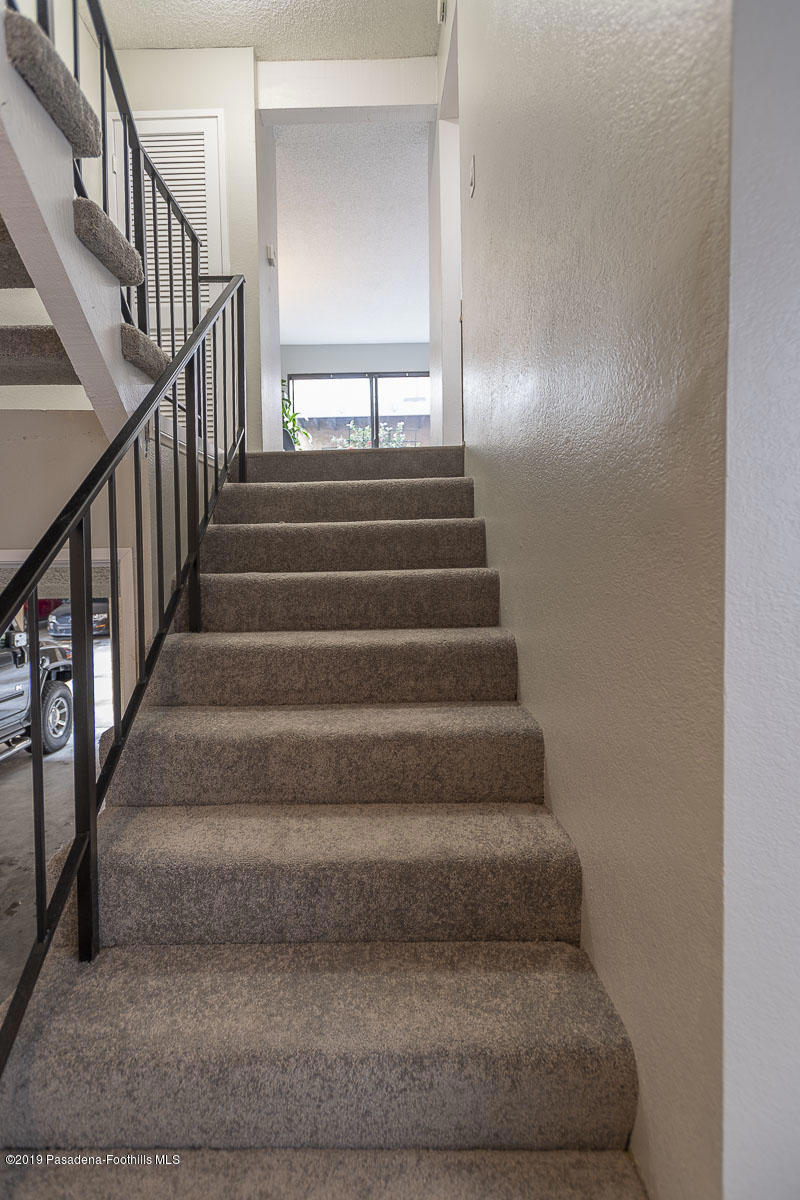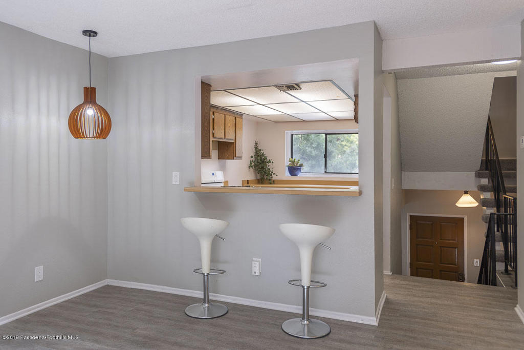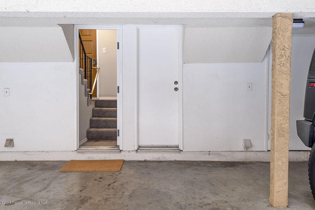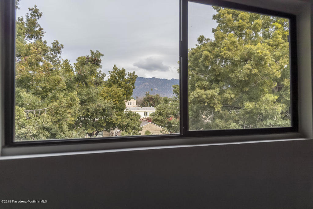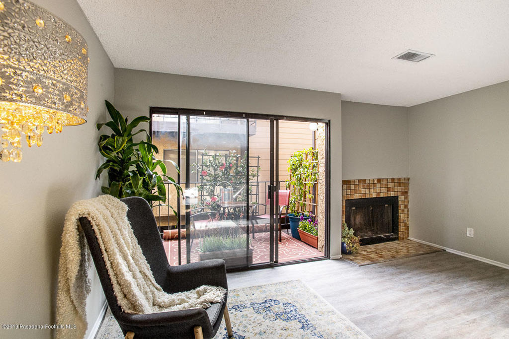 Walk-up from street level to this delightful and clean two bedroom, 1.5 bathroom townhome in Pasadena. Located in a convenient location close to CalTech,Pasadena City College, and the Playhouse District. Easy access to freeways, Gold Line, shops and restaurants. The home has been thoughtfully and recently updated with new interior paint, laminate wood flooring and light fixtures. The kitchen offers generous storage and counter space with a lovely view of the San Gabriel mountains. A fireplace and private balcony accompany the living room. Upstairs are two spacious bedrooms that share a full bath. The larger bedroom measures 13' by 10'8'. There is a dedicated laundry area with washer and dryer hookups in the upstairs hallway; there are also washer/dryer hook-ups in the covered carport area currently used as storage space. One covered parking space and direct access into the unit are under the home with gated entry from Wilson. Professionally managed community with no restrictions on rentals (long term only). An exceptional opportunity in a well maintained property.