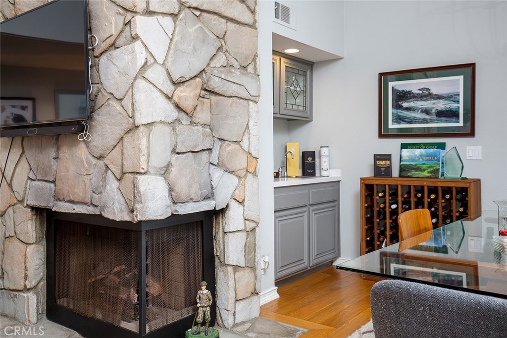 This is a “Must-See!” One Thousand California unit 302 is on the top floor of a small intimate complex of 24 condominiums in one of Pasadena’s most desirable areas… near Caltech and South Lake Avenue’s restaurants and shops. Enjoy this unit with its bright natural light, magnificent cathedral ceilings and exposed wood flooring throughout. To the left of the long entry hallway is a spacious breakfast room and open kitchen with granite countertops, recessed lighting, fresh white cabinetry, and eat-on-bar all accented by the dark tiled flooring. The washer and dryer units are included and are housed along the central hallway which leads to a very inviting living room with glassy sliders to a large private patio with its own storage closet. A wrap-around stone faced fireplace extends into the adjoining dining area with its wet bar and storage cabinetry. The two bedrooms are privately away from the living area, each is serviced by separate updated bathrooms. The main bedroom at the rear has an intimate private patio with a gas fire pit. Enjoy this special unit!