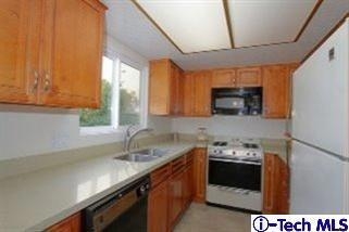 Immaculate end unit at the back of the complex. Very private! 2 Master suites, 3 baths, remodeled kitchen(cabinets, countertops, flooring). Laminate flooring in living and dining room. New carpet, paint, double pane windows, plantation shutters. 2 car attached garage with laundry. A real showplace! 12 unit complex is beautifully maintained. HOA $225, includes earthquake insurance.