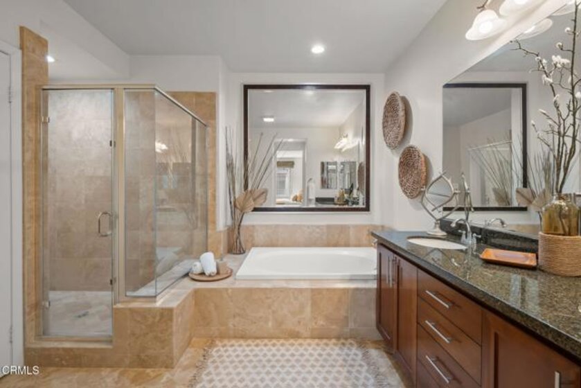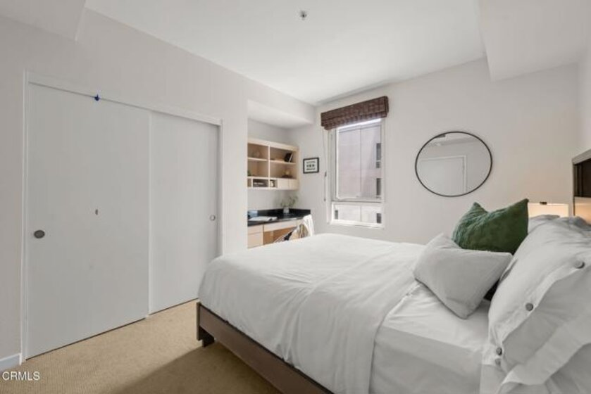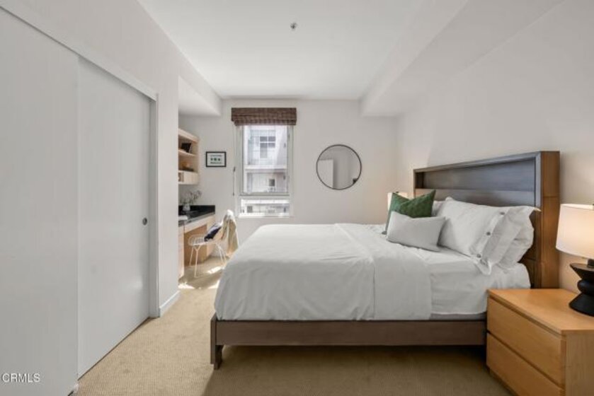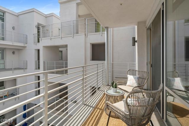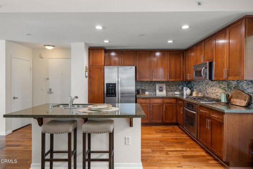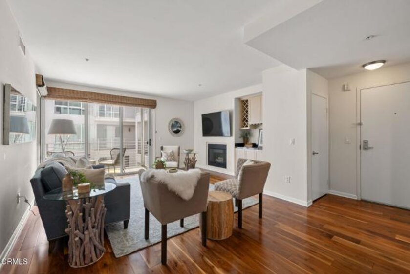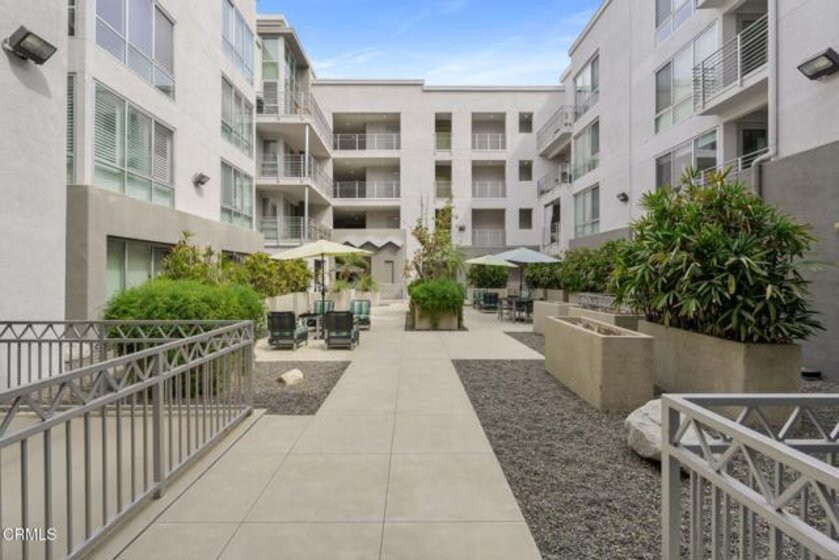 Located in the heart of Pasadena's Historic Old Town, this fabulous end-unit condominium offers the perfect blend of sophisticated elegance coupled with modern living at its best. It features an open-concept layout with an inviting flow between the living room, the dining area and the kitchen. The living room features hardwood flooring, a welcoming fireplace, a built-in entertainment center and soaring 9-foot ceilings. Floor-to-ceiling sliding glass doors open to a private balcony, filling the home with a lot of natural light. The adjacent dining and kitchen area showcases charming tree-top views as well as views of Green Street. The kitchen is both stylish and functional, with custom cabinetry, recessed lighting and a central island with a breakfast bar. The large primary suite includes a spa-like bathroom with an oversized tub, separate shower, beautiful marble finishes and huge custom closets. The second bedroom is well laid-out, complete with a built-in office nook. The condo is sold with THREE designated parking spaces (one that is a commercial space) and two good-sized storage units. Set in a highly sought-after location surrounded by shops, dining and entertainment, this condo delivers the best that Pasadena has to offer. Welcome home!
