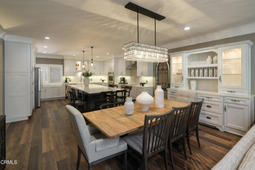 This exquisitely renovated residence offers an elevated living experience in one of Pasadena's most desirable communities. From the beautifully carved solid wood front door to the thoughtfully designed interior, every detail speaks of elegance, comfort & timeless style. The formal entry welcomes you with a custom tray ceiling & ambient lighting. Wood-like laminate flooring with a half-inch cork underlay ensures a quiet & cushioned foundation throughout. At the center of the home is an impressive great room--a rare, fully reimagined open-concept layout not found elsewhere in the building. Design highlights include oversized custom crown molding, a stone-tiled gas fireplace & a chef-caliber kitchen with a massive quartz island, soft-close cabinetry, designer tile backsplash, farmhouse apron sink, a custom-made electric cook top, double oven, microwave drawer & an appliance garage. The adjacent dining area features a built-in buffet & designer chandelier to complete the space. To the right of the entry, the first of two ensuite bedrooms--currently arranged as a media room--features recessed lighting, crown molding, dual closets & wood-louvered shutters. The ensuite bath includes basket-weave tile flooring, a quartz vanity, subway-tiled shower walls & a frameless glass enclosure. Down the hall, the expansive primary suite functions as a peaceful retreat. It includes built-in cabinetry, a designer light fixture & a glass slider opening to a private balcony. The ensuite bath showcases an oversized quartz vanity with a makeup area, a custom-tiled shower/tub combination, recessed lighting & a walk-in closet with built-in shelving. A side-by-side washer & dryer are discreetly tucked behind elegant barn doors along the hallway. Accessed from both the living area & primary suite, a private balcony retreat offers tranquil courtyard views & peek-a-boo views of Orange Grove Blvd, perfectly positioned to enjoy the world-famous Rose Parade route. As part of a well-maintained HOA, residents enjoy exclusive access to a community clubhouse, pool & spa--all within minutes of Old Town Pasadena, the 210 Freeway, fine dining, boutique shopping & cultural landmarks. Additionally, the unit comes with two side-by-side parking spaces in a secured parking garage with built-in storage cabinets at the front of those spaces. This is a rare offering that blends sophistication, comfort & location--a truly one-of-a-kind home for those who value thoughtful design & a luxurious lifestyle.