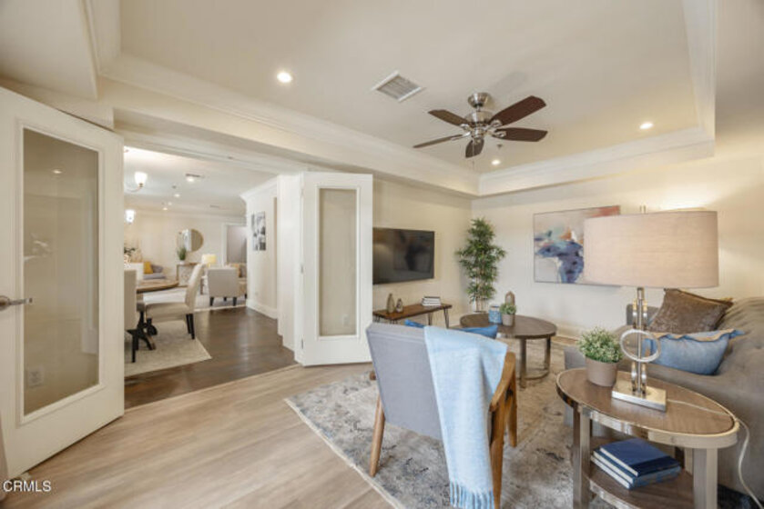 Luxury Living in the Heart of Pasadena's South Lake DistrictWelcome to a truly exceptional offering--this luxuriously renovated, single-level condo in one of Pasadena's most desirable and walkable neighborhoods. With 3 generously sized bedrooms, including two elegant primary suites, and 3 beautifully appointed bathrooms, this residence blends timeless sophistication with modern comfort.Each primary suite enjoys direct access to its own private balcony, offering a serene setting to unwind or take in the fresh air. Inside, the chef's kitchen is outfitted with rich maple cabinetry, sleek quartz countertops, and flows seamlessly into a formal dining area illuminated by a classic chandelier--perfect for entertaining in style.The spacious living room impresses with a dramatic floor-to-ceiling stone fireplace, crown molding, and recessed lighting throughout, creating an atmosphere of warmth and refinement. A separate library, den, or office with hardwood floors offers flexibility for work or quiet retreat.At the heart of the home, you'll find expansive central balconies, ideal for dining al fresco, hosting guests, or enjoying a peaceful morning coffee. A convenient in-unit laundry area enhances everyday ease.This well-maintained, secure building features elevator access and includes two assigned, side-by-side parking spaces in the gated garage for added convenience and peace of mind.Located just moments from the vibrant South Lake Avenue District, this home is surrounded by the area's most popular destinations, including SUGARFISH, Smitty's, UOVO, Green Street Restaurant, and Williams Sonoma. Easy access to Caltech, the 210 Freeway, and the Metro Gold Line makes commuting effortless.If you've been searching for the perfect blend of luxury, location, and lifestyle, your opportunity has arrived.