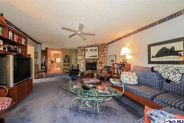 Top floor, end-unit located at the rear of the complex away from So. Orange Grove Blvd. This spacious light-filled unit offers generous-sized formal rooms two bedrooms, and den with walk-in wet bar. Large living room with stone fireplace and access to a balcony with courtyard and pool view. Large FDR. Generous sized kitchen with large bank of windows offering treetop view and an eastern exposure. Built-ins include an electric oven and cooktop, refrigerator and stackable washer and dryer are included in the sales price. Two generous-sized bedrooms with treetop views. Intimately living with only 11 units in the complex. Newer landscaping, remodeled heated pool, and two car covered parking highlight the unit. Low HOA fees of $462 include hot water and heated pool.