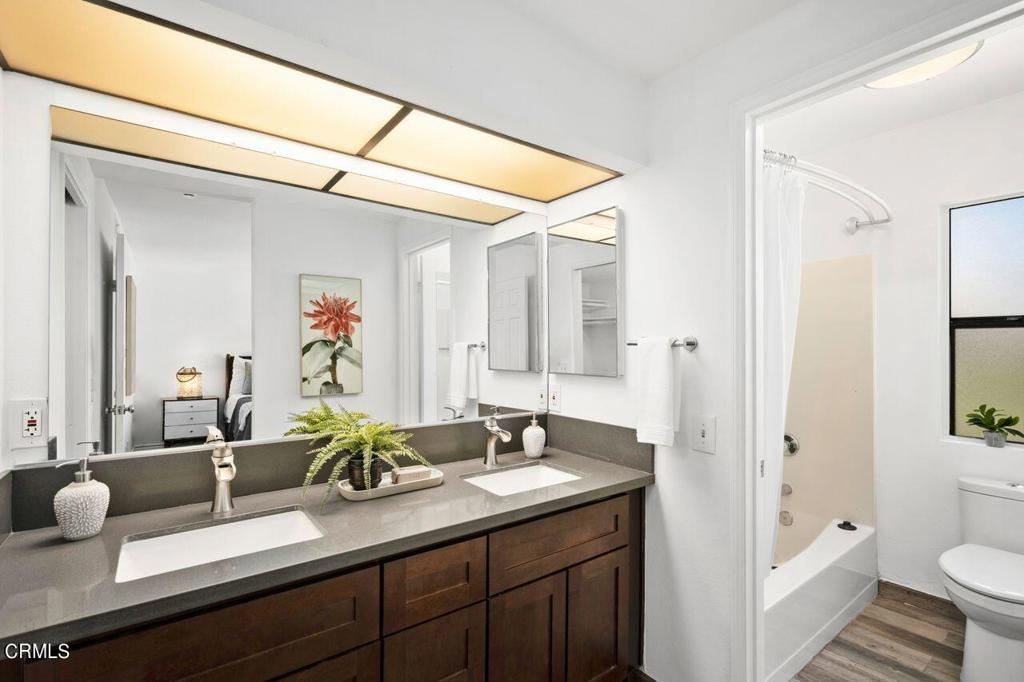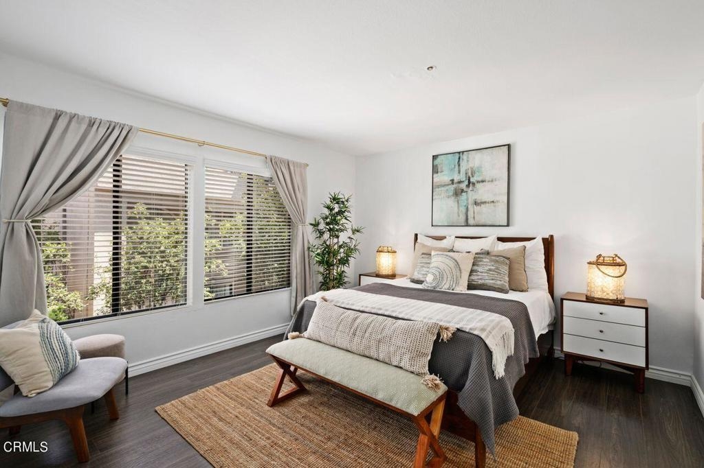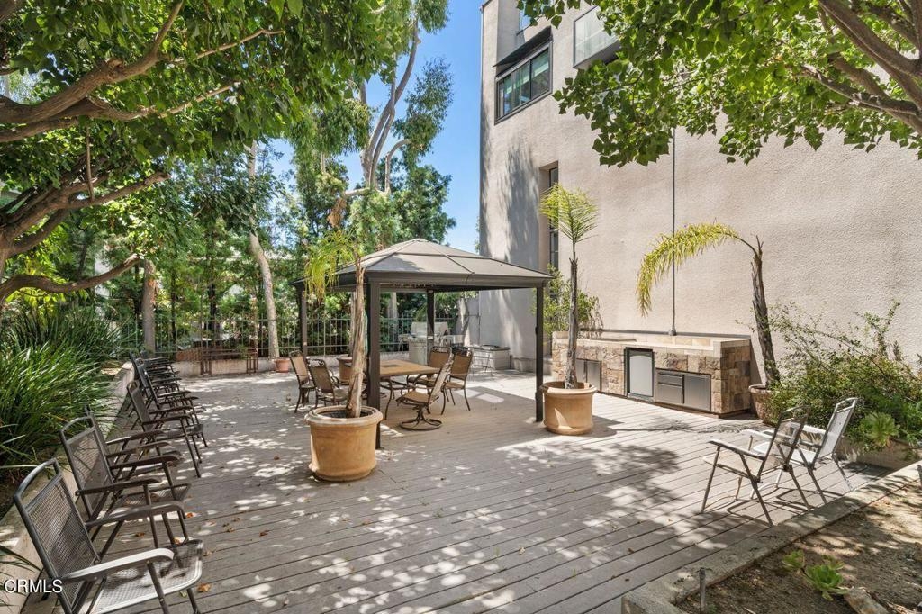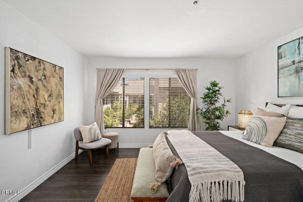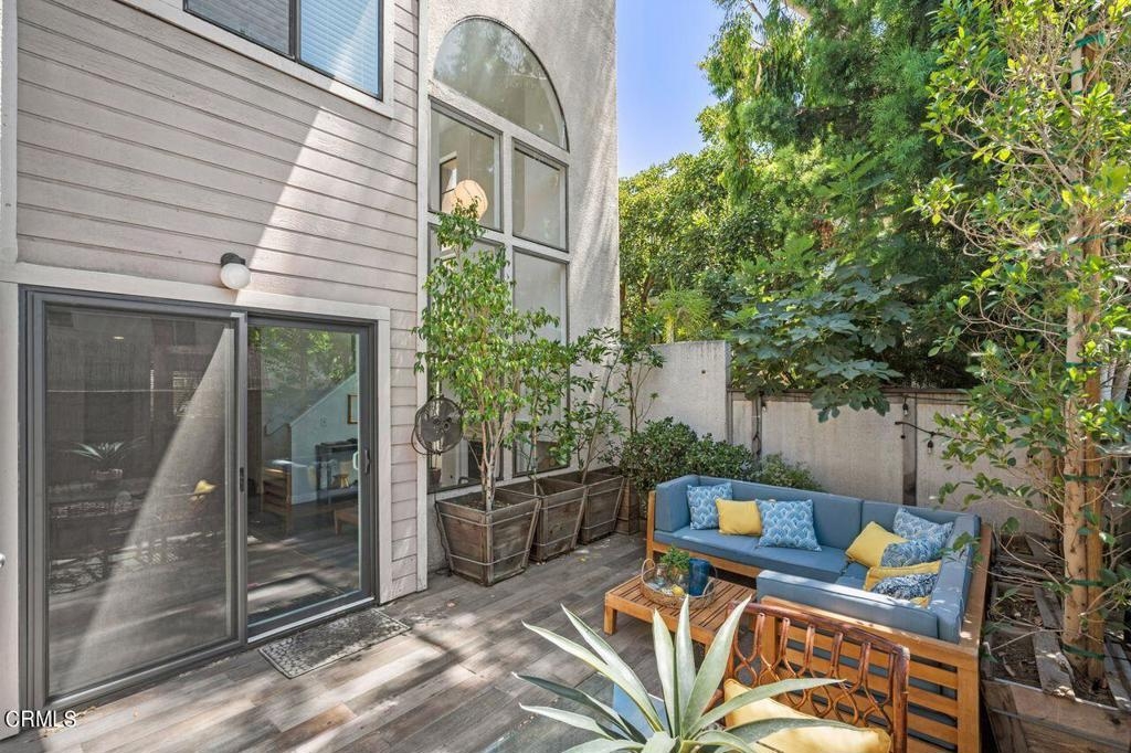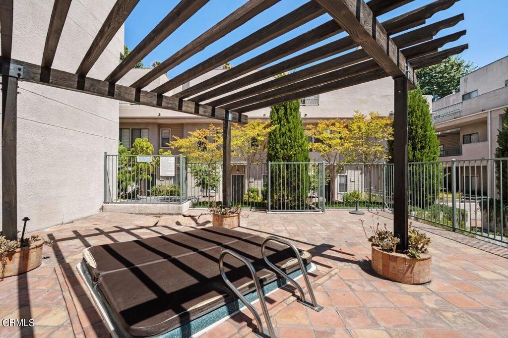 Beautifully designed townhome within a gated community in one of Pasadena's most historic neighborhoods, you can explore the shady tree-lined streets with a mix of turn of the past century homes and enjoy the central location to all Pasadena has to offer-restaurants, shopping, museums, and cultural events.The design is light and airy, with soaring ceilings and multiple windows. The remodeled kitchen has stone counters, newer cabinets, and stainless steel appliances. Open to the dining room and living room with a breakfast bar. There is a powder room and laundry room on the main level. Cozy up to the living room fireplace or entertain on the spacious private, fenced patio. Upstairs the main bedroom has a walk-in closet, and remodeled bath. The guest bedroom has ample closets and a full hallway bath. Newer central air and heat. The community has multiple patios, an outdoor cooking/dining area, and a spa.