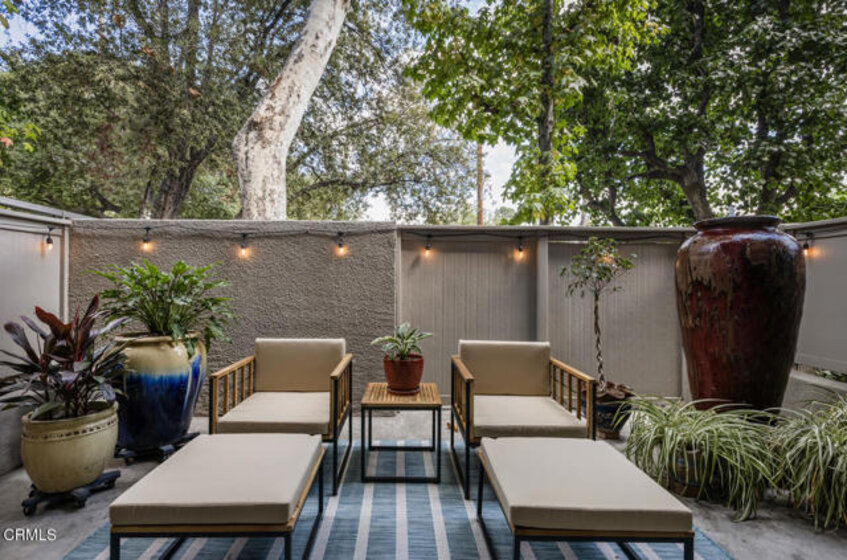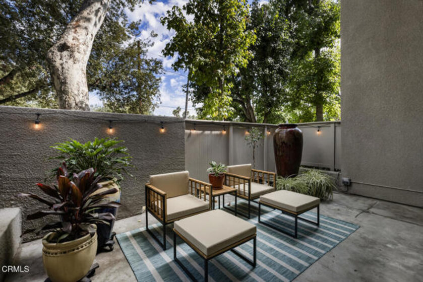 This spacious townhome-style condo offers two bedrooms, two-and-a-half bathrooms, and a thoughtfully designed layout with a seamless indoor-outdoor flow. The main level connects the entry, dining area, and living room, which includes a versatile space ideal for a home office or reading area. The living areas lead to a very large private patio surrounded by mature trees--creating a peaceful and scenic setting perfect for entertaining, relaxing, or gardening. The kitchen features plantation shutters, newly installed flooring and recessed lighting, and opens nicely to the dining area for easy everyday living. A half bath and in-unit laundry are conveniently located on the first floor. Upstairs, both bedrooms are comfortable suites with full bathrooms and walk-in closets. Additional highlights include new dual-pane windows, fresh interior paint, two secured parking spaces, a well-maintained complex with a BBQ area, and a controlled-access entry. Combining comfort, function, and convenience, this Pasadena home is move-in ready and offers the ideal setting for enjoying Southern California living--conveniently located near dining, shopping, the Metro, and easy freeway access.